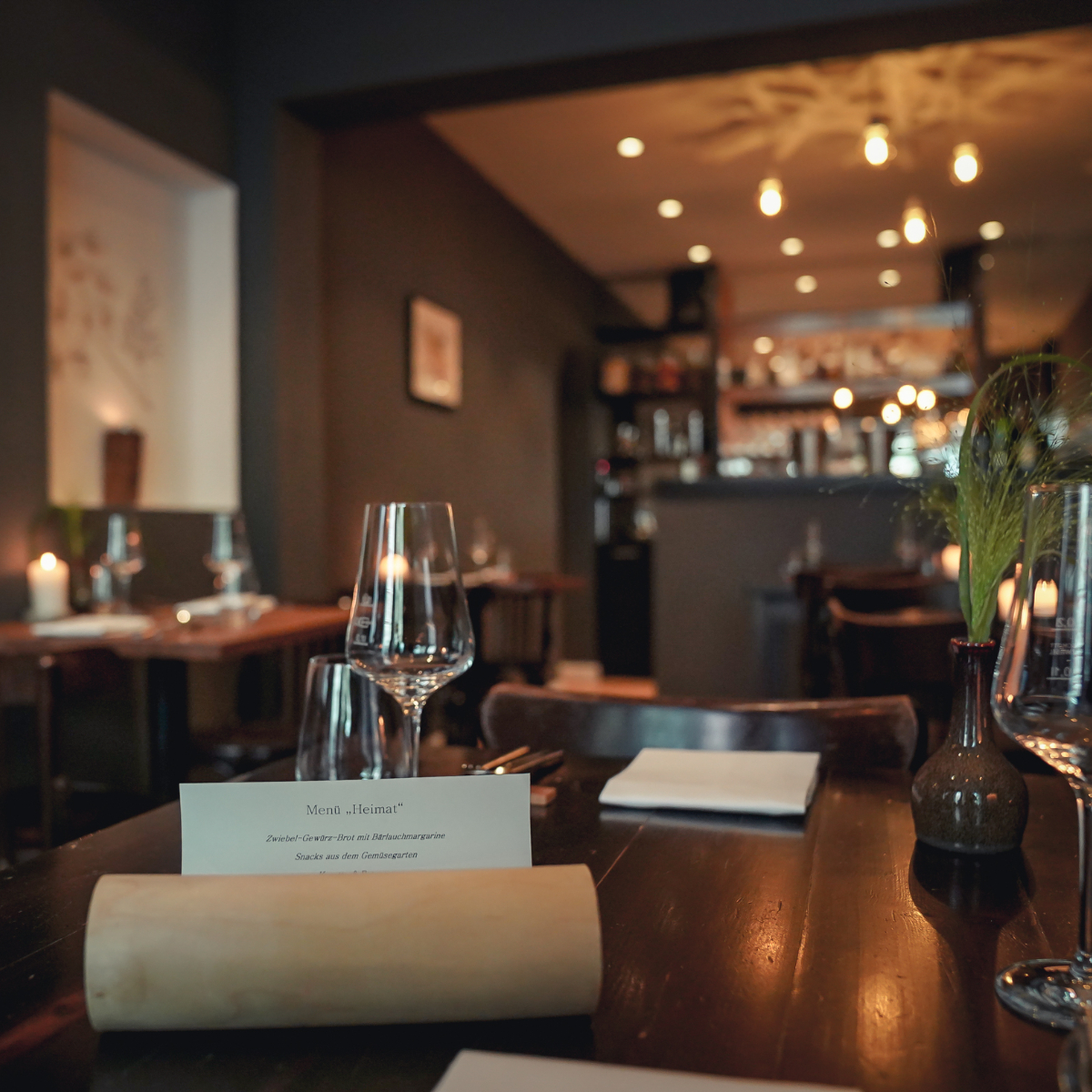 Heimatjuwel serves regional dishes, sometimes accompanied by something unusual. And so there is a slice of calf's head on the plate, lovingly decorated with lots of greenery. It's a bit of an effort at first, but the combination with fresh salad and delicate seasoning makes this first course a well-rounded affair.