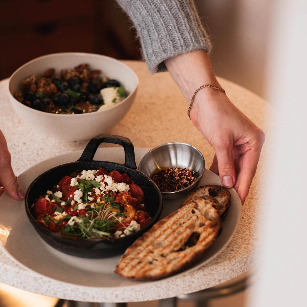 The eclectic interior of industrial meets bohemia meets mid-century certainly knows how to fascinate us. But it can also impress with other values. Brunch all day long, for example.