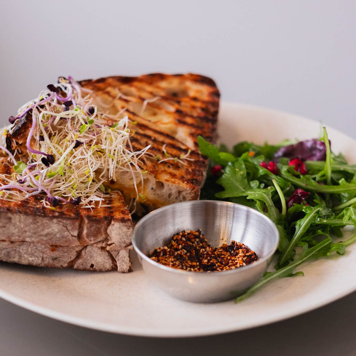After a long night, the Turkish Egg Delight with natural yoghurt, onions, sumac, dill, and homemade chilli crunch is also perfect. Or you can enjoy a timeless and very well-prepared classic, such as organic scrambled eggs with avocado on delicious sourdough bread. Incidentally, all dishes are also available in vegetarian or vegan versions.