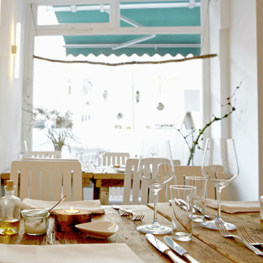 It’s been a couple of days and I’m still daydreaming of the fish restaurant Jellyfish. The restaurant itself is held minimalist, yet very comfortable: grey floor, white walls and rustic wooden tables dressed with Grandma’s silverware. With little turquoise details here and there, the place reminds me more of a tavern somewhere along the coast in Portugal.