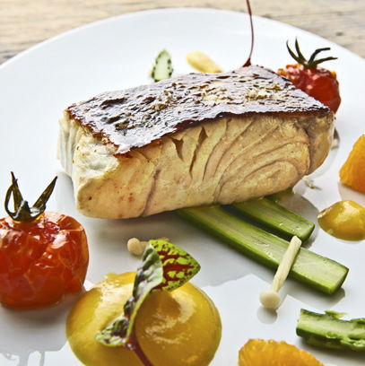 The following courses were grilled squid on a carpaccio of calf’s head - all critical looks vanish upon the first bite. Fish and meat are in perfect harmony for this one and the octopus is so soft it practically melted. The third course was a shellfish-bouillabaisse with scallops. We’re both head over heels - this restaurant didn’t get its 14 Gault Millau points for nothing!