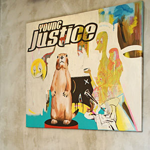We’re sitting on Hamburg’s most comfortable chairs. The walls are neatly plastered with concrete, the interior is sheer, a beautiful shade of grey is dominant. The only splash of color comes from the jazzy paintings by Hamburg painter Elmar Lause.