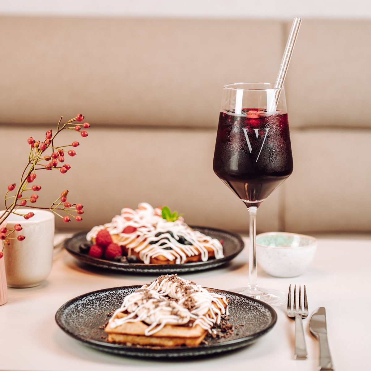 But it's not just the Scandinavian chic that makes the bistro a hot spot in the Hanseatic city. In July 2020, the Winzerhood opened its doors and has since become the perfect place to go for Nordic wine lovers and veggie fans. Here, fine wines meet sweet waffles.