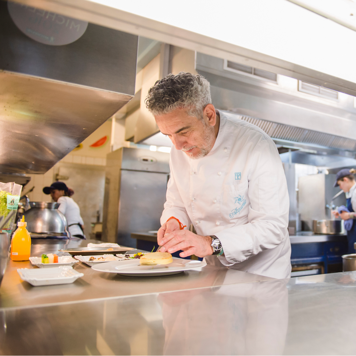 "For my profession, you need curiosity, openness, dedication and enthusiasm," explains the Italian-born chef. For his refined dishes, he uses the best seasonal ingredients and conjures up modern interpretations of Mediterranean classics such as carpaccio of Fassone beef with paprika-papaya relish or saltimbocca of scallops.