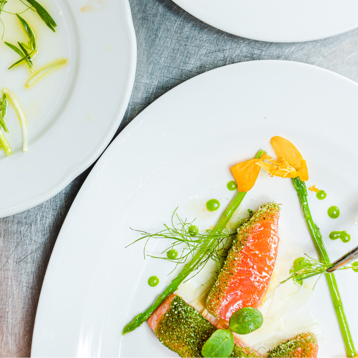 All the dishes at Acquarello are almost painterly in their presentation, which explains the restaurant's name (Aquarello). Fittingly, the brightly decorated restaurant with turquoise colour accents is adorned with murals depicting fictitious Italian-Antique landscapes.