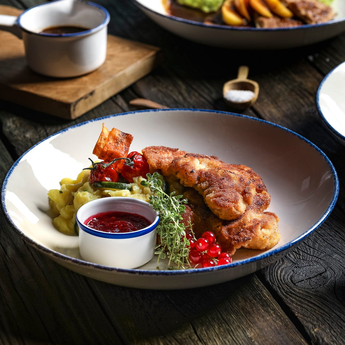 We follow the recommendation of the day - a wonderfully tender entrecote - and also try the Wiener schnitzel. Wonderfully thin, wonderfully delicious! We were particularly taken with the two desserts: wheat beer tiramisu and Kaiserschmarrn with caramelized almonds. A dream - and just as attractively presented as all the other courses!