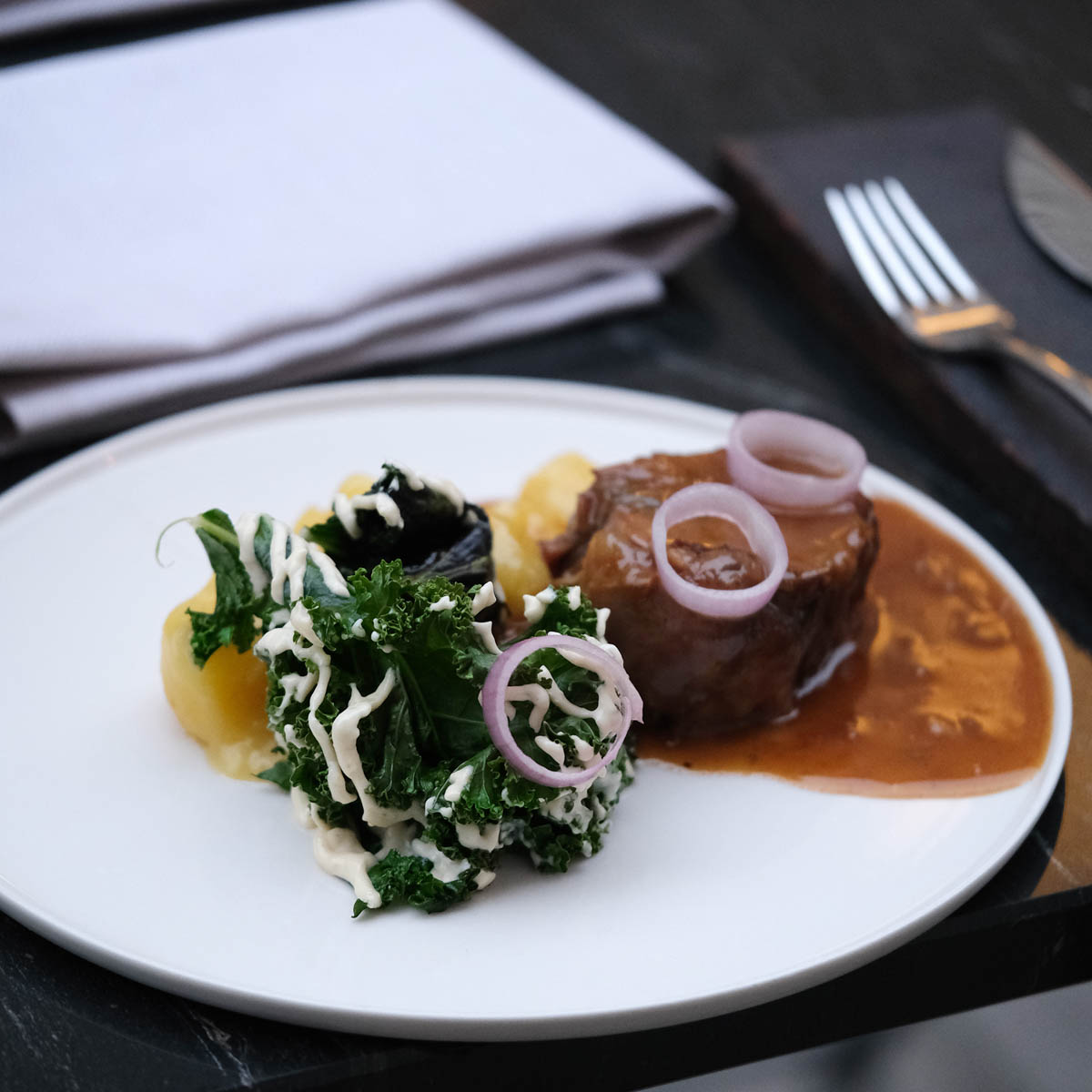 On the other hand, the menu is impressive. In addition to classics such as a selection of ham and cheese, there is excellent bread from Julius Branter as well as oysters and more than half a dozen delicate dishes that can be served as an optional multi-course menu, such as chicory with smoked hollandaise and hazelnuts, char with cauliflower or a beef onglet with leek and shiitake.