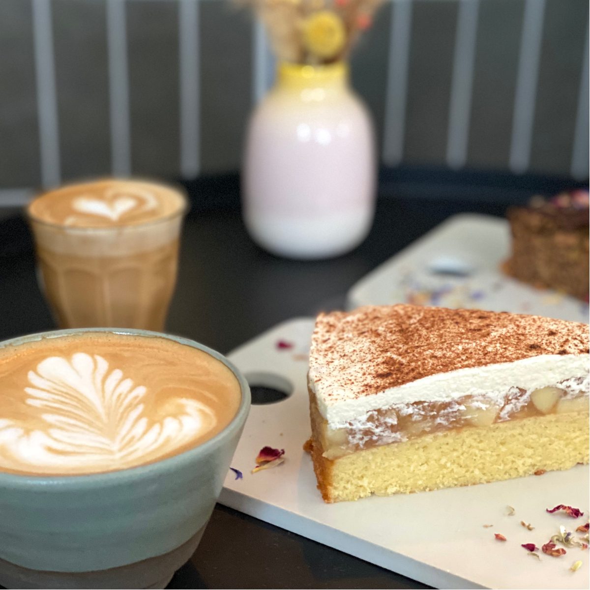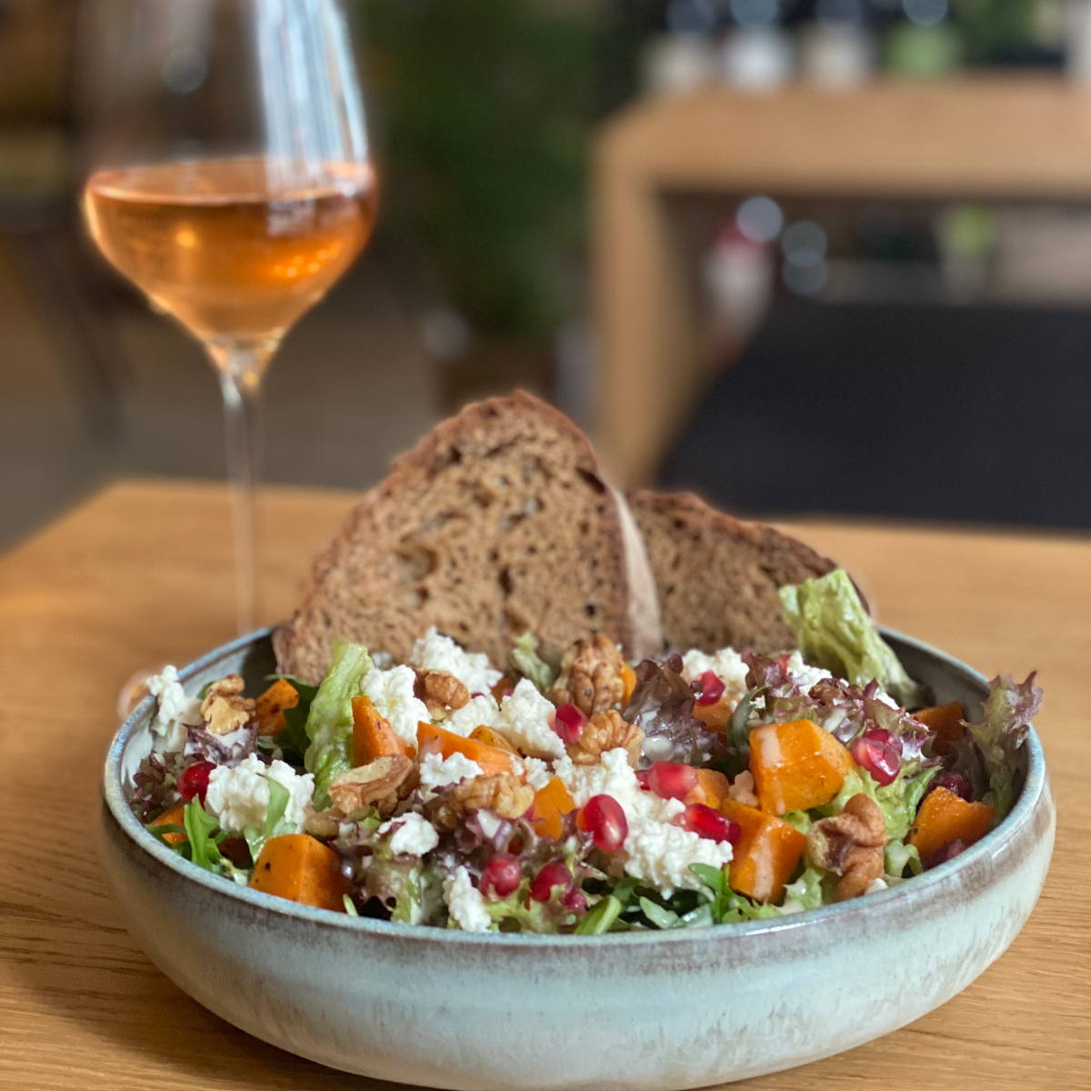 Plenty of plants, expansive armchairs with chic boho cushions, seating niches by the window and rattan lamps on the ceiling make the place a feel-good spot - similar to the living room of your best friend or a friendly neighbour, where you can also enjoy homemade cakes, exceptional wines and fine food.