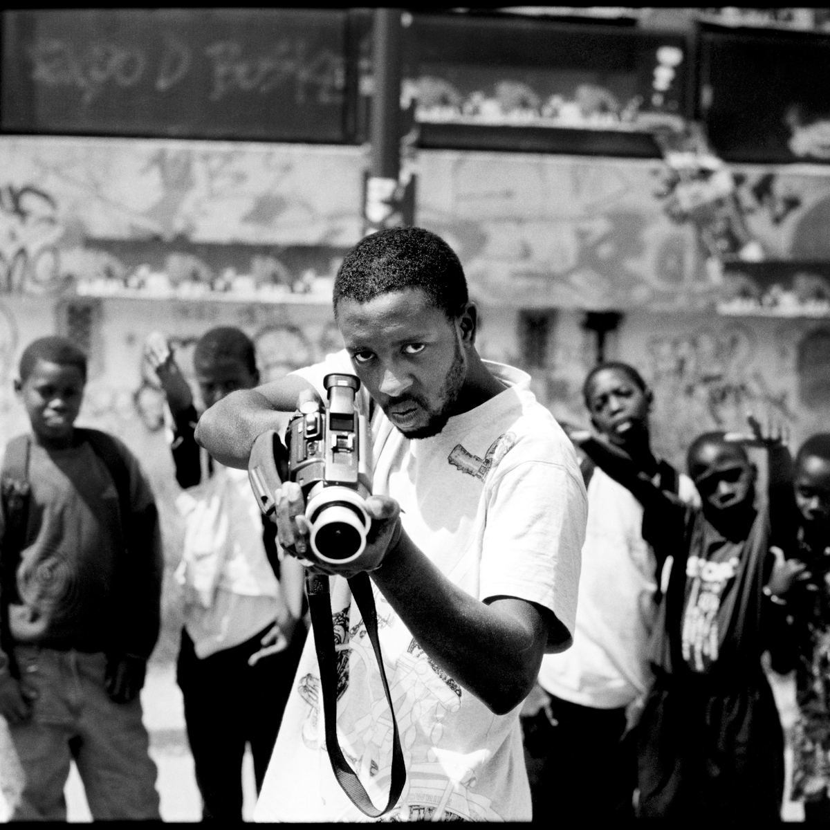 For example, a quick first glance at the portrait of French filmmaker Ladj Ly suggests a man with a gun in his hand, but on second glance, it turns out to be a camera. Such ambiguous motifs are typical of the artist JR, who is celebrated by many critics as a younger Banksy. Like the latter, he became famous for his primarily politically motivated graffiti.