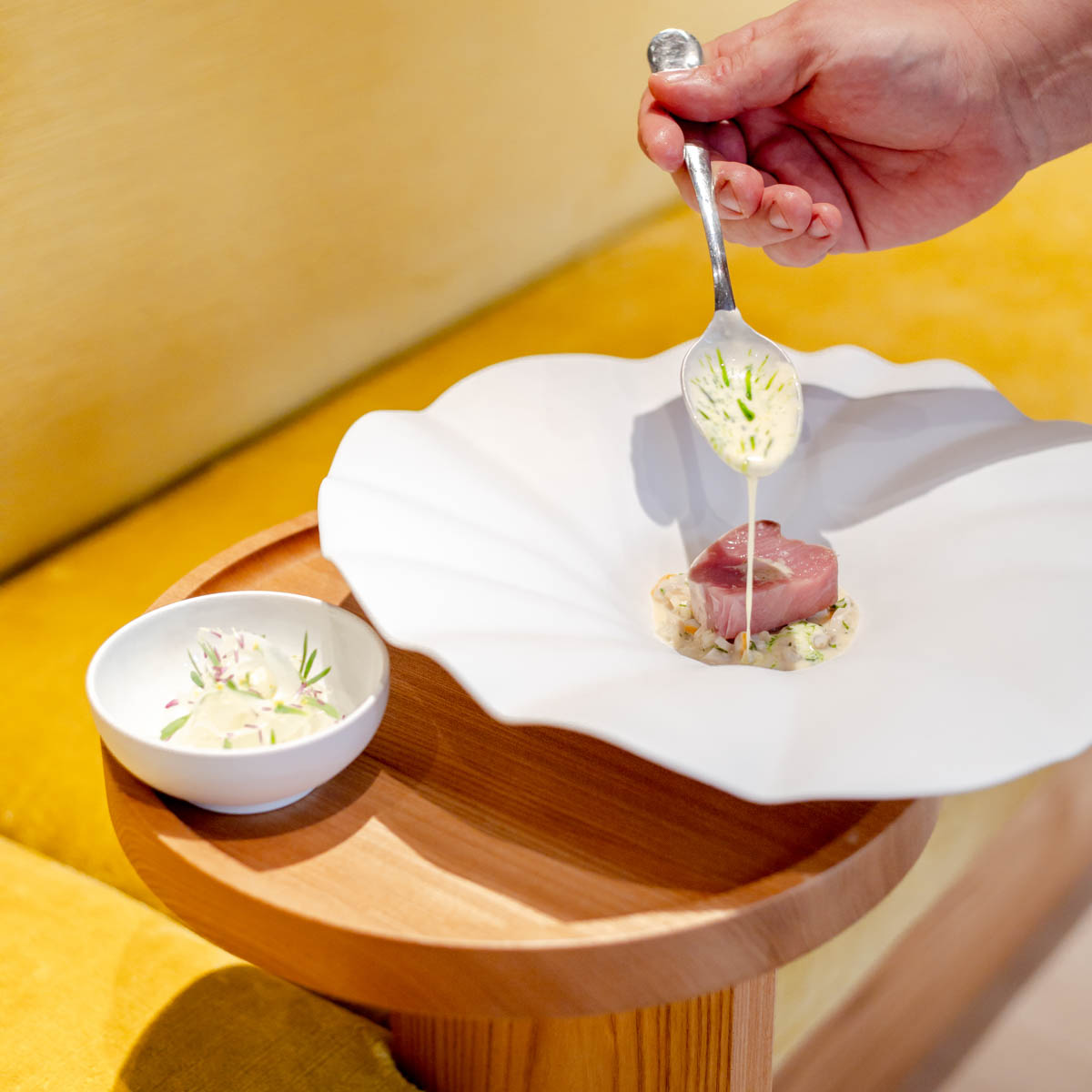 The 38-year-old's style could be described as product cuisine with a French-Asian flavour - although Christoph Kunz does not like to commit himself to a particular direction: "Robinson Crusoe luxury describes my philosophy quite well, I think. Bold and creative, but always coherent. For me, it's all about character. On the plate, with the guests, in the team. It is precisely these rough edges, created by personality, that round off the culinary experience at Komu," he says.