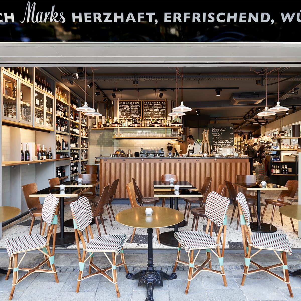 Visually, the delicatessen is reminiscent of an American deli without losing the charm it had when it opened in 1961. The modern interior is inspired by retro elements as well as original furnishing rarities from New York and Paris.