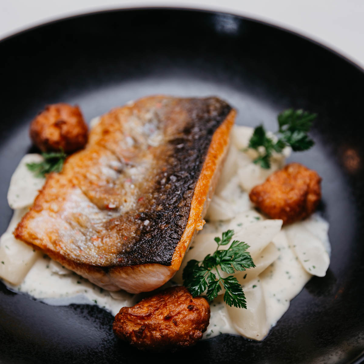 Thomas Rockstroh's penchant for seafood dishes, steak cuts and fish dishes can be explained by his former place of work, the sister restaurant Wolfsbarsch just outside Munich.