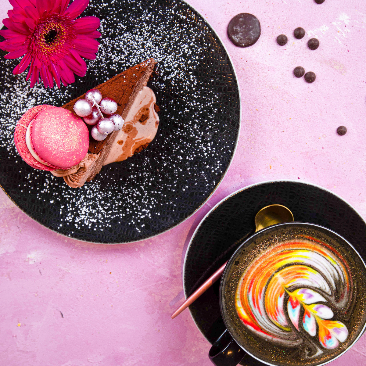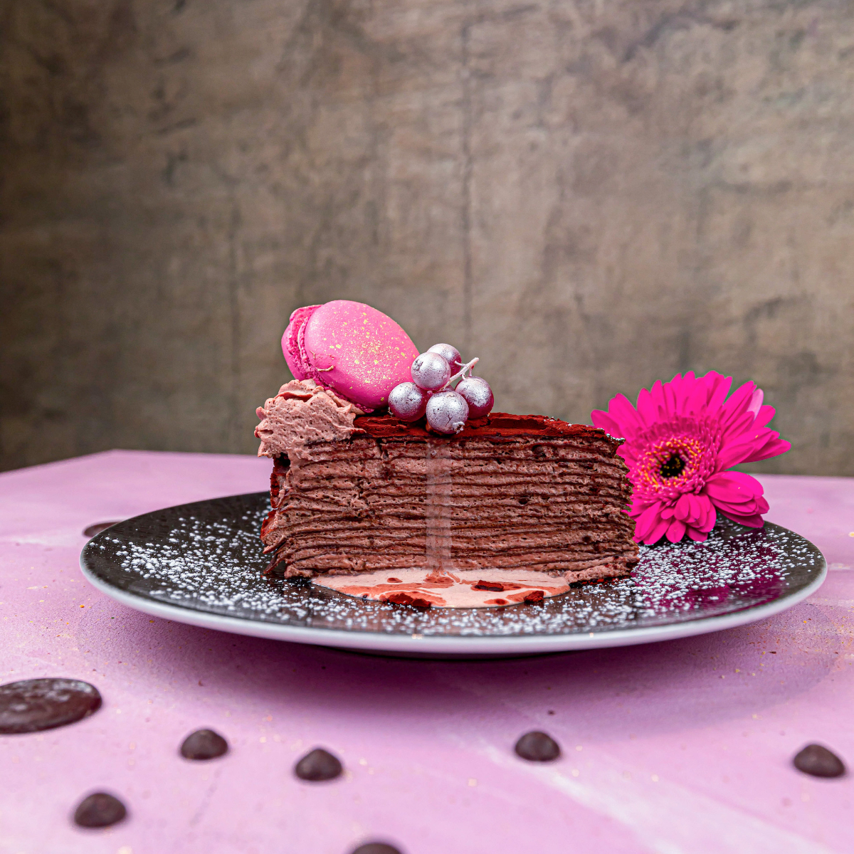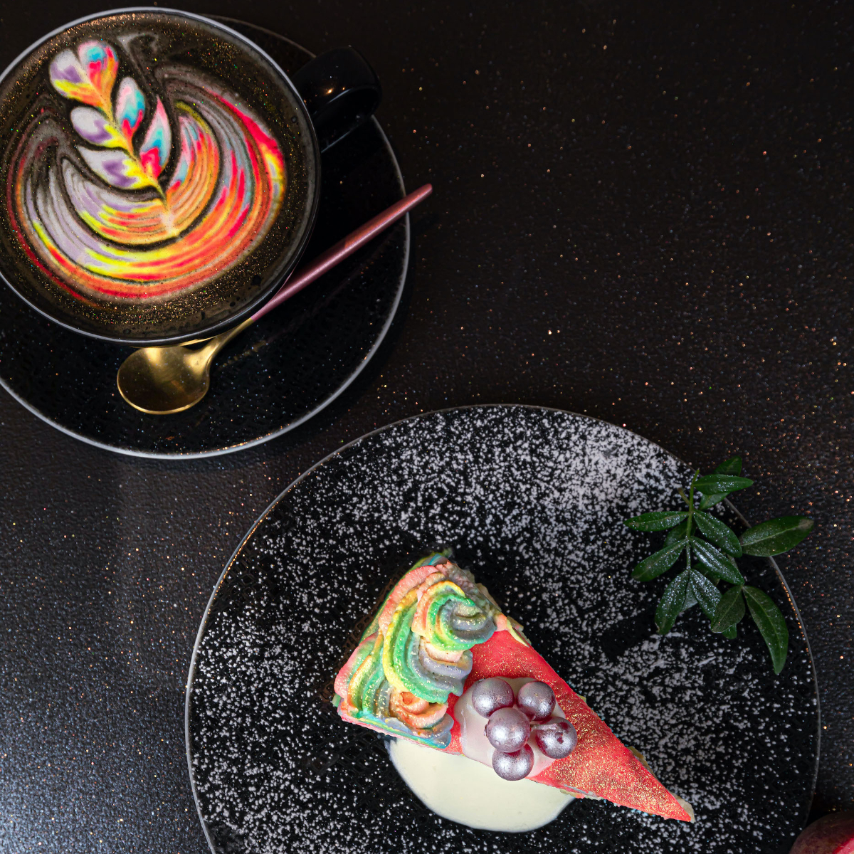 The sweet highlight par excellence, apart from the fluffy chiffon cakes and cheesecakes, is the crêpe cakes. A Japanese dessert classic consisting of several layers of dough and cream. The Venom with Oreo biscuits and activated charcoal is just as recommended as the bestseller, the colourful Rainbow Crêpe Cake.
