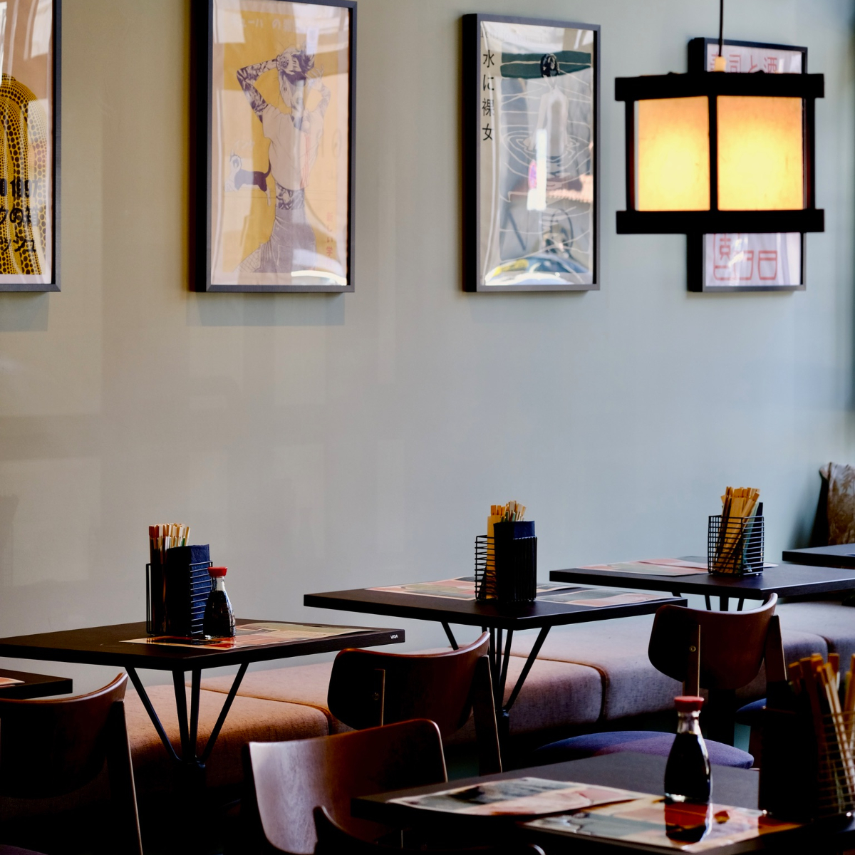 When it comes to drinks, Nori also offers a small selection of wines and beers as well as various spritzes. Drinking and dining are done at simple dark wooden tables, either with a view of modern art prints on the walls or of the stylish bar with black panelling - cosy at any time of day!