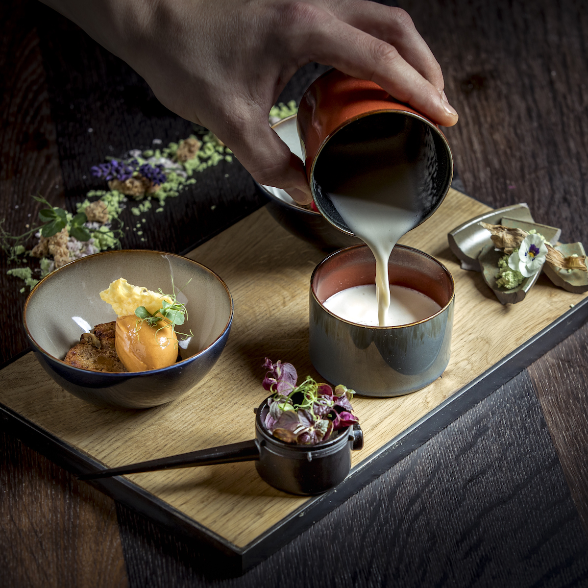 Kitchen director Michael Sobota and his young team drawn from the five-star hotel industry serve “upscale Bavarian-inspired cuisine from local manufacturers,” as it explains on the Pfistermühle website.
