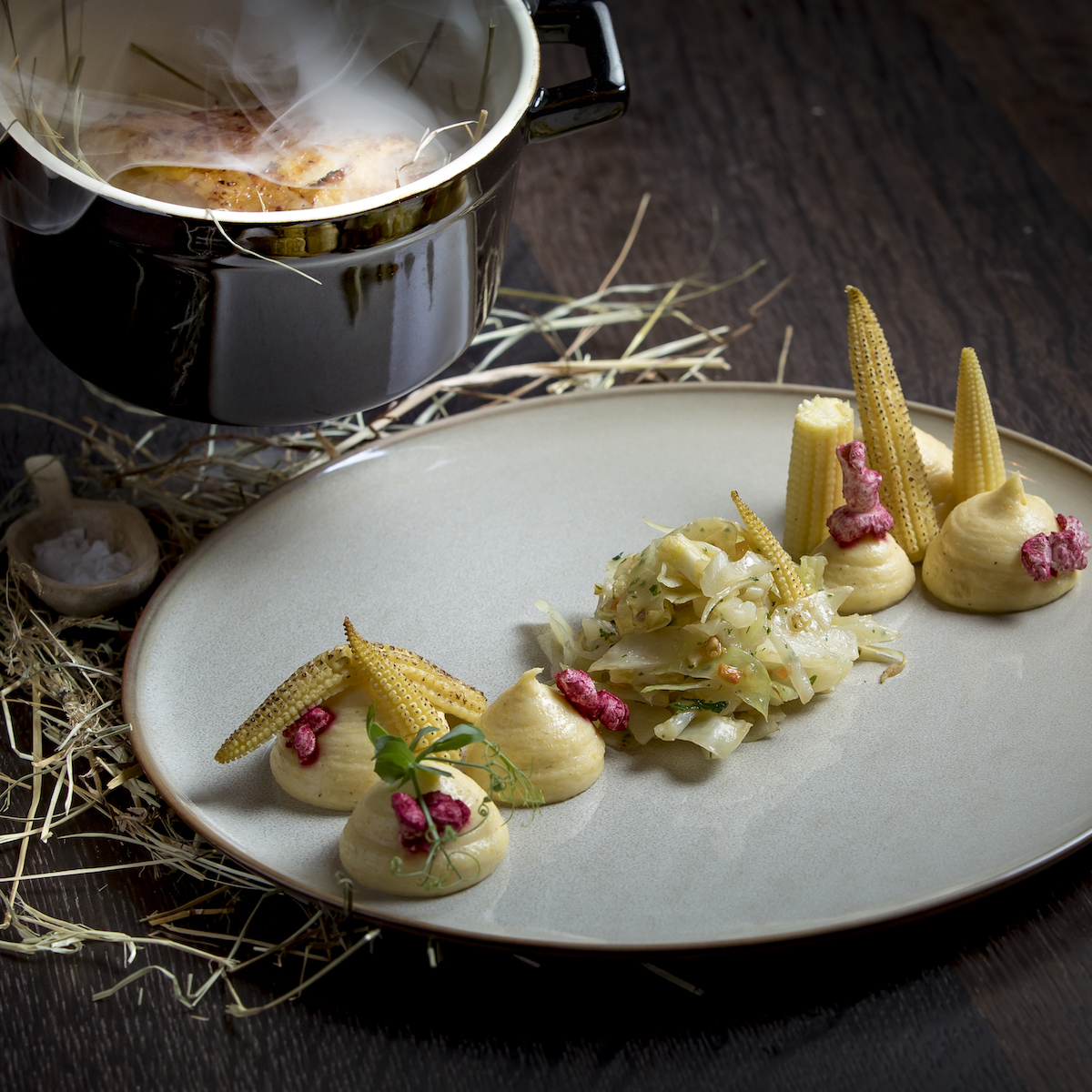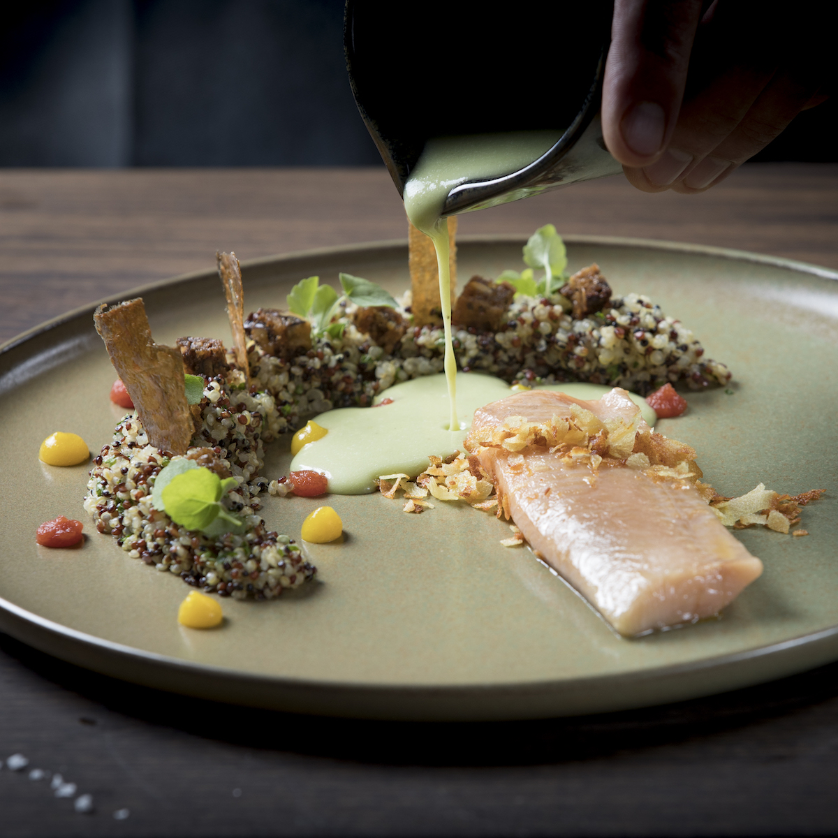 In the end I opt for the vegetarian menu, my companion selecting three courses à la carte. We don’t regret a thing. Each individual dish is a well-balanced surprise.