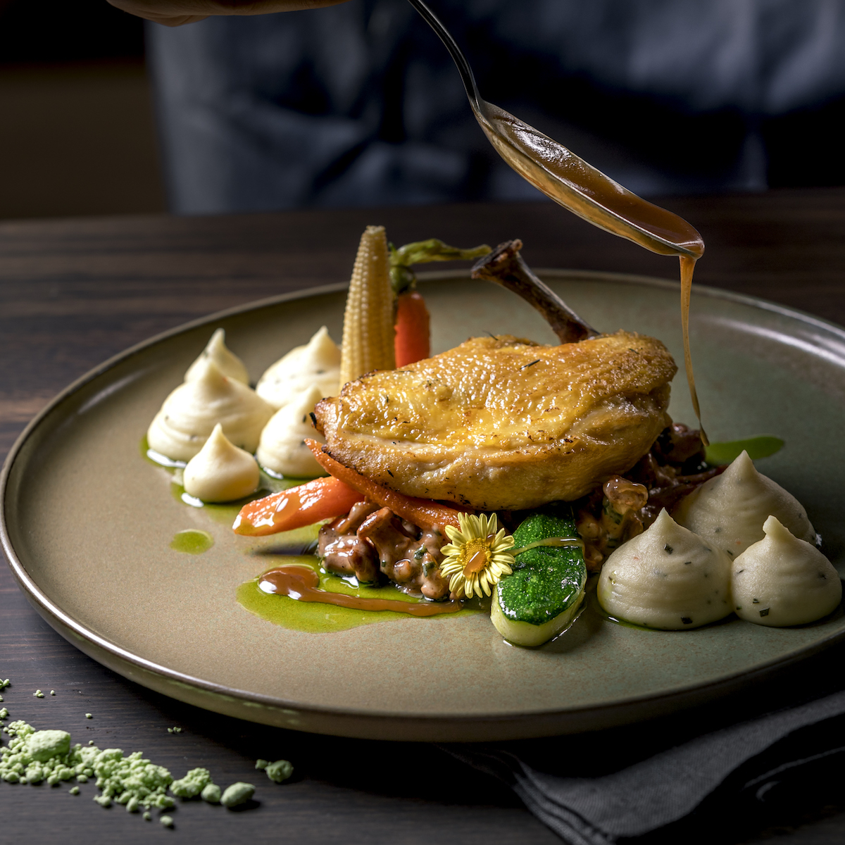 The confit salmon trout and tomato served three ways, which we get to enjoy for our starters, are real highlights. The main course venison is soft as butter, the vegetarian risotto with the perfect amount of bite.