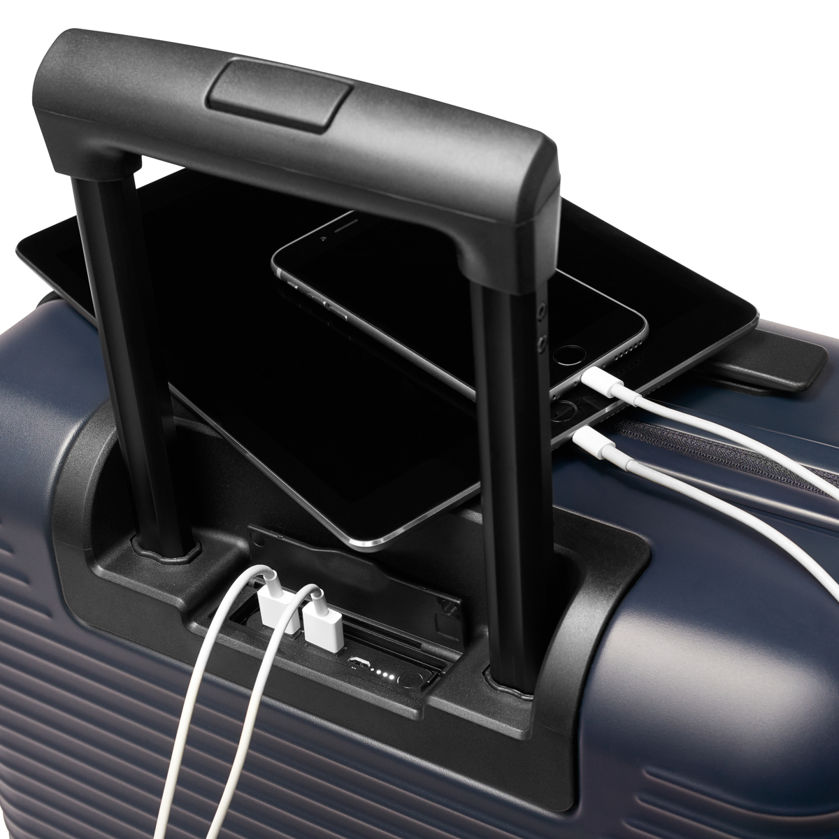 Alongside the high-quality materials and sophisticated design, the chief attraction of the suitcases is something else: each of the chic “cabin trolleys” has a power bank with the capacity to recharge a cellphone up to six times.