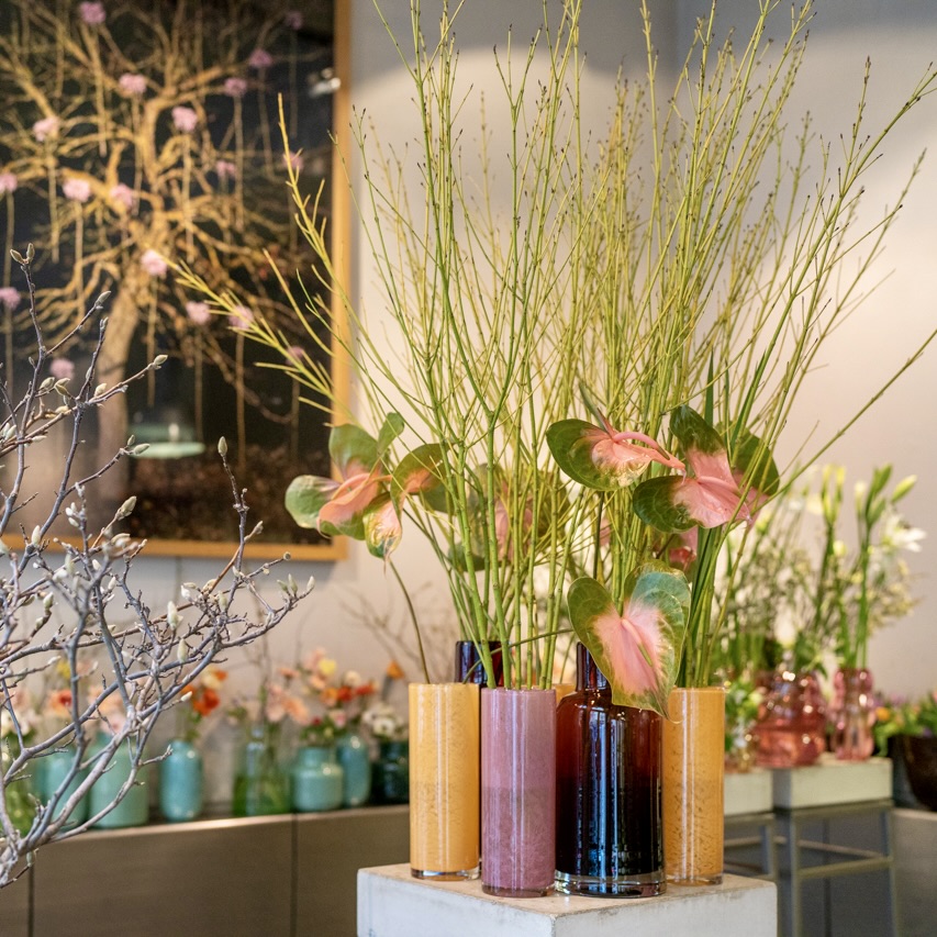 The shop looks like an art gallery with its high ceilings, generous arched windows and simple plinths and shelves. Art in the classical sense is not on offer here, but the flower bouquets created by florist Christine Fink and her team at Blumenkraft are undoubtedly artistic.