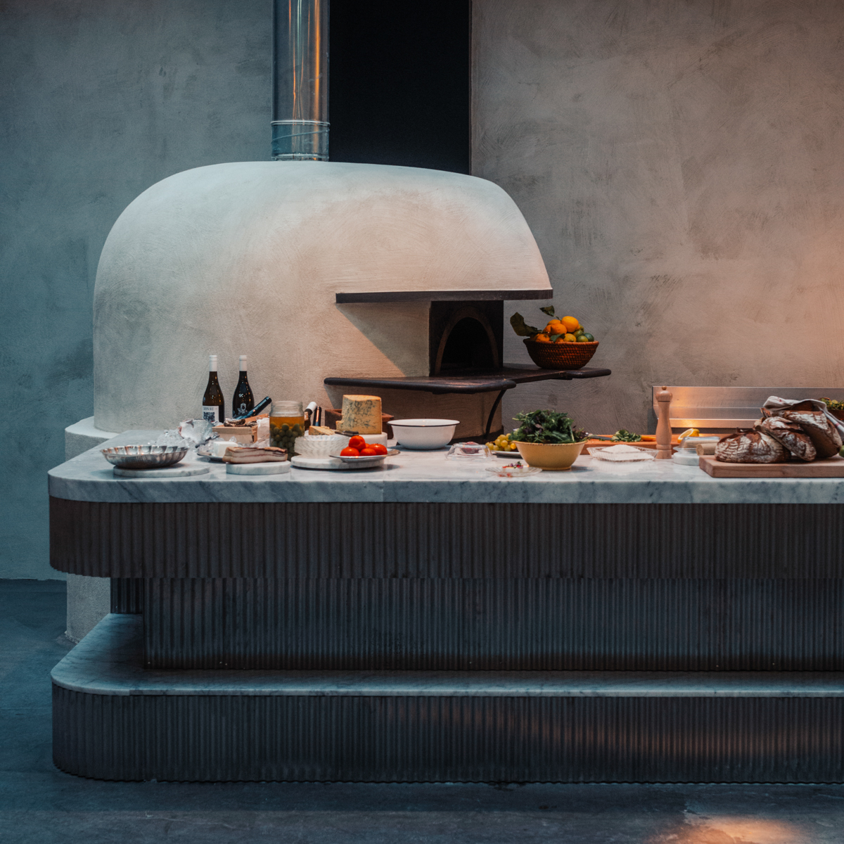 The dishes are presented on the marble counter like an oil-painted still life. Bright yellow lemons. Brown butter piled up into edible sculptures. Glass bells with dried fruits and candied oranges. Shiny oysters and enormous loaves of crusty baked bread.