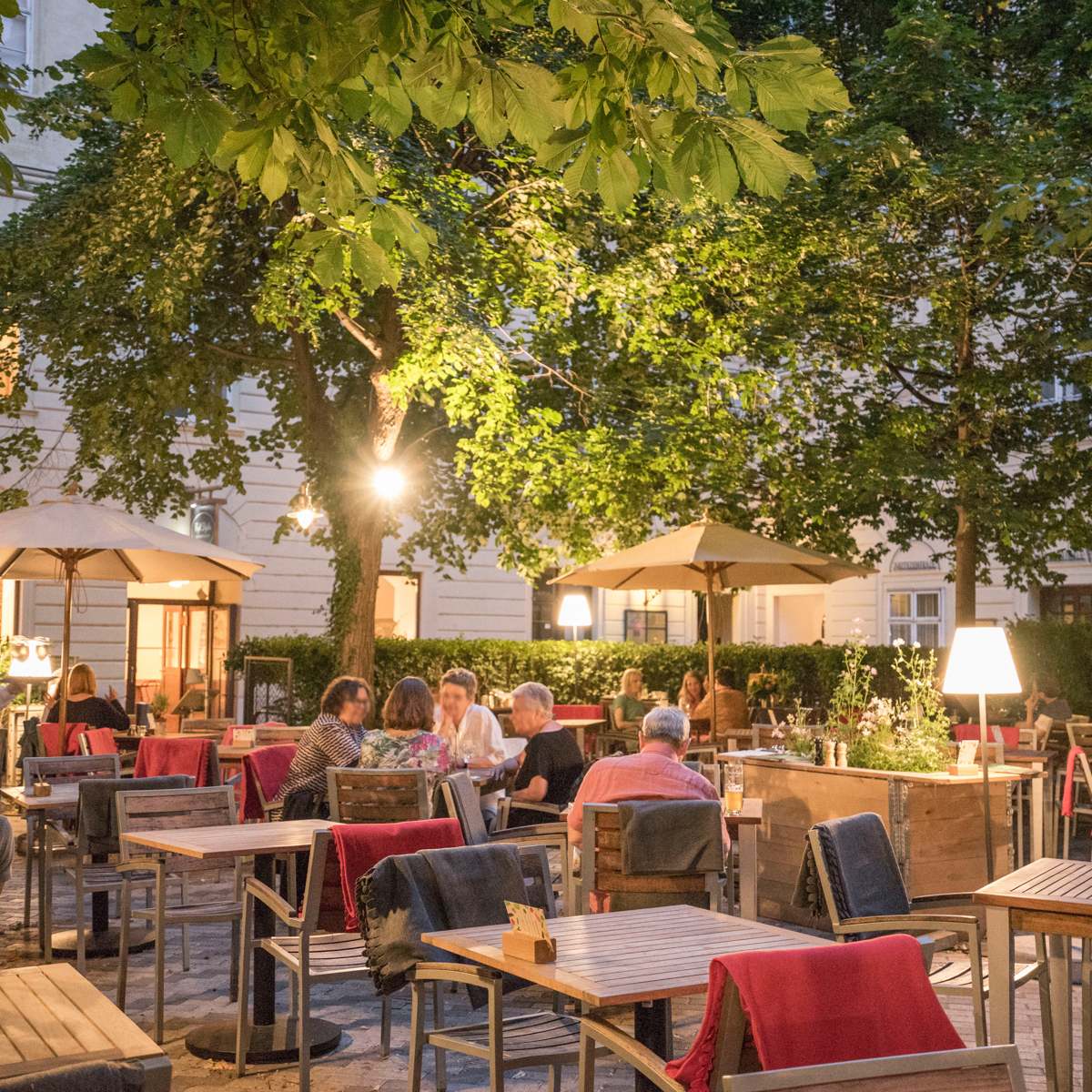 All stress and city noise is forgotten as soon as you enter the spacious inner courtyard of the monastery. Instead: Peace, cool air and sprawling trees several storeys high. Classic coffee house dishes are served. It starts with a Viennese breakfast with handmade pastries, croissants and egg dishes and ends with a relaxed glass of wine in the evening, accompanied by small snacks.