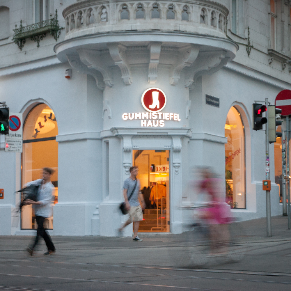 The thoroughbred retailer redirected her focus to where she thought the future lies: a proper one-line store! One location, no online shopping, a large selection, and professional consultation. The concept has been fruitful. The Viennese can’t get Gummistiefelhaus out of their minds. Tourists flock to it.