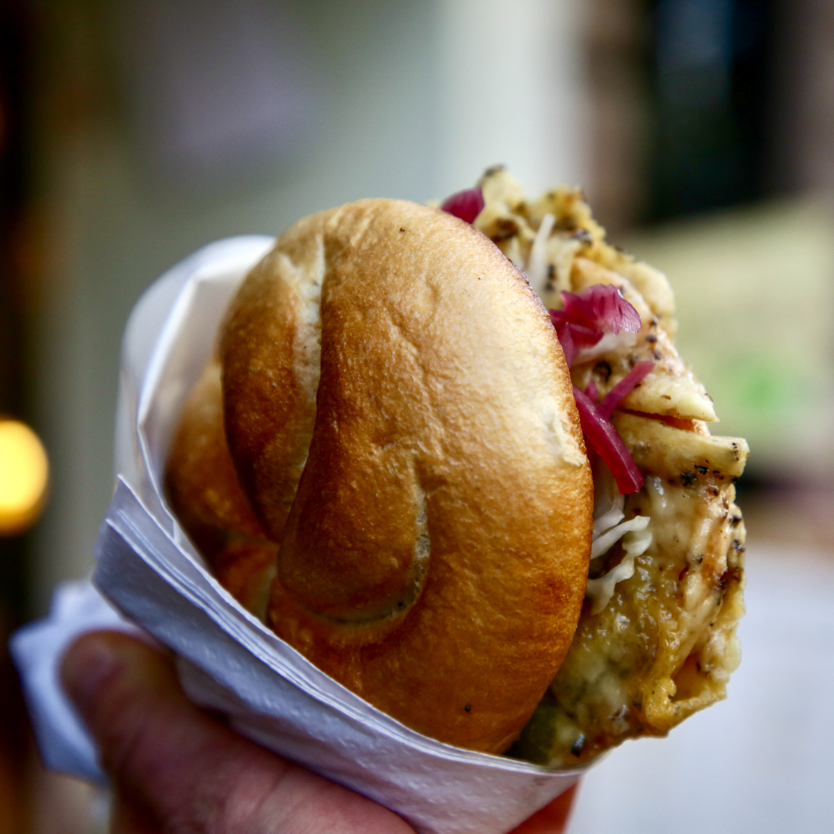The employee recommends port wine pepper: it heats things up - in keeping with the temperatures. His favourite? He says it depends on the day. He has tried them all, of course. "And even though I eat them every day, I still have a craving for them," he says and slides a roll under the grill for himself.