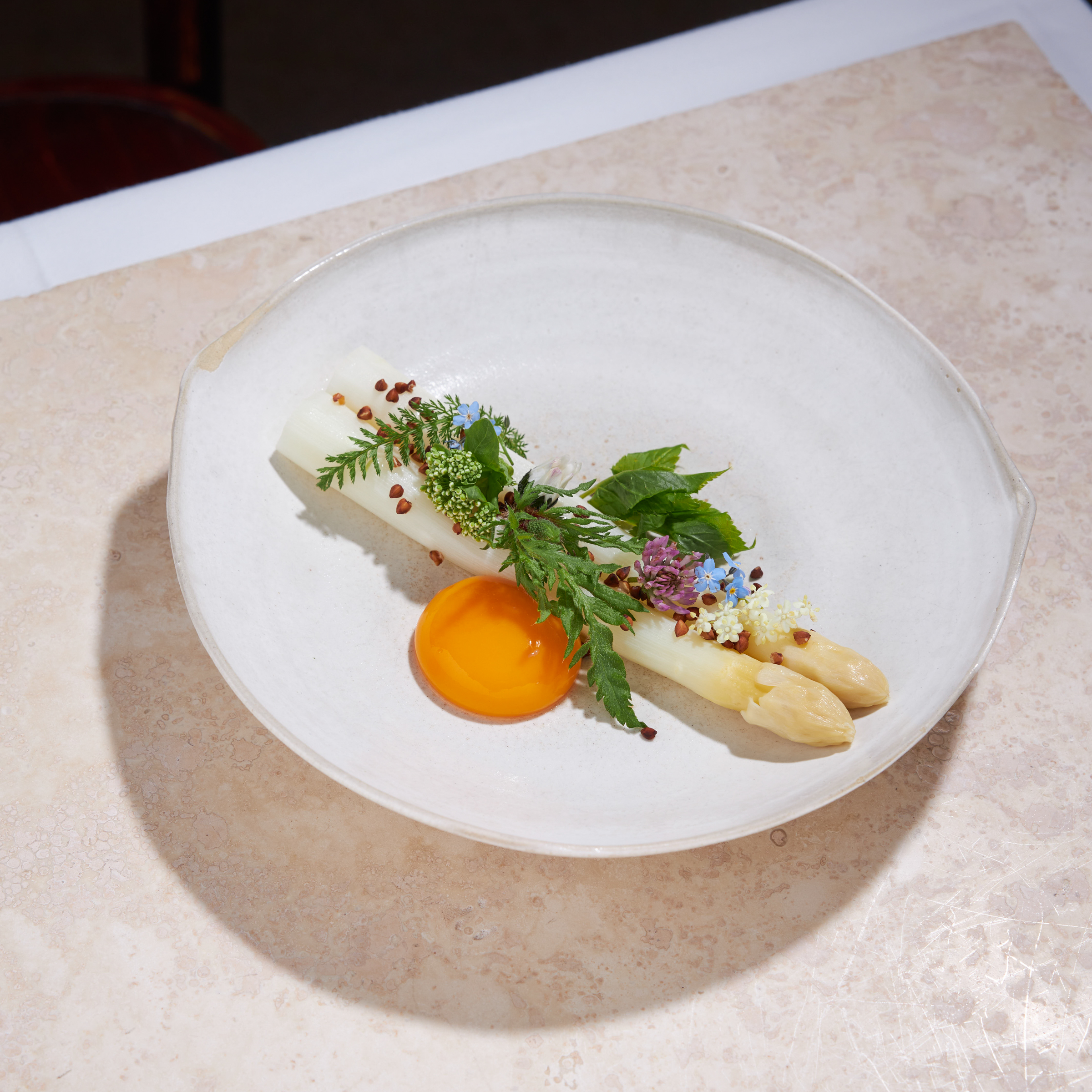 This reduced way of cooking runs through the entire menu, which comprises four to six courses, depending on preference. The fresh ingredients are allowed to shine, are cooked to perfection, puristic and harmoniously seasoned. It starts with the first greeting from the kitchen: vegetables from the monastery garden, "harvested very freshly", the chef enthuses, and served only with a vinaigrette for dipping.