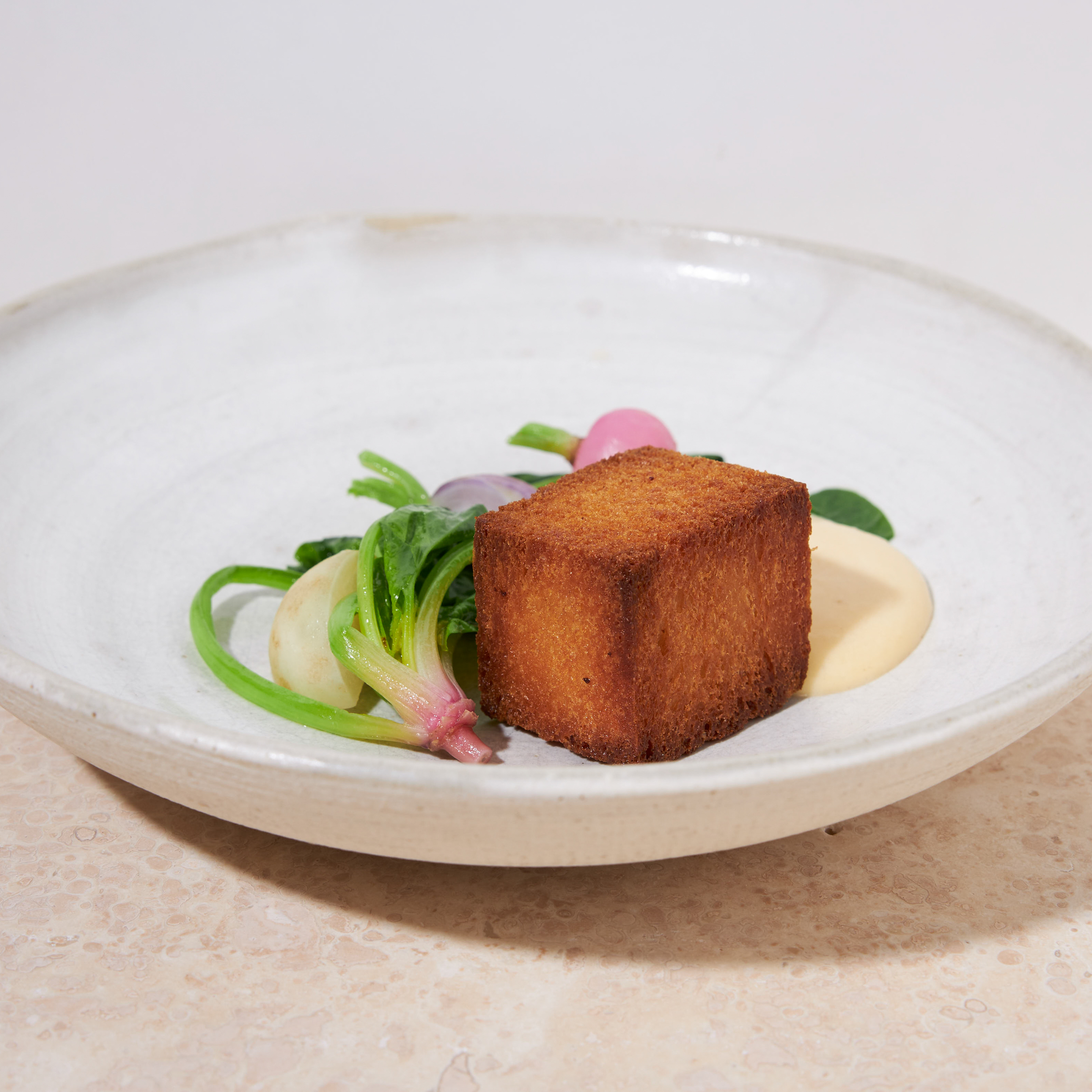 It continues with Steffi Parlow's home-baked bread, accompanied by Yiddish liver and pickled spring vegetables. The subsequent courses feature Heurige Erdäpfel and dark sautéed Jungkraut, which enters into a delicious ménage-à-trois with cream cheese and smoked fish.