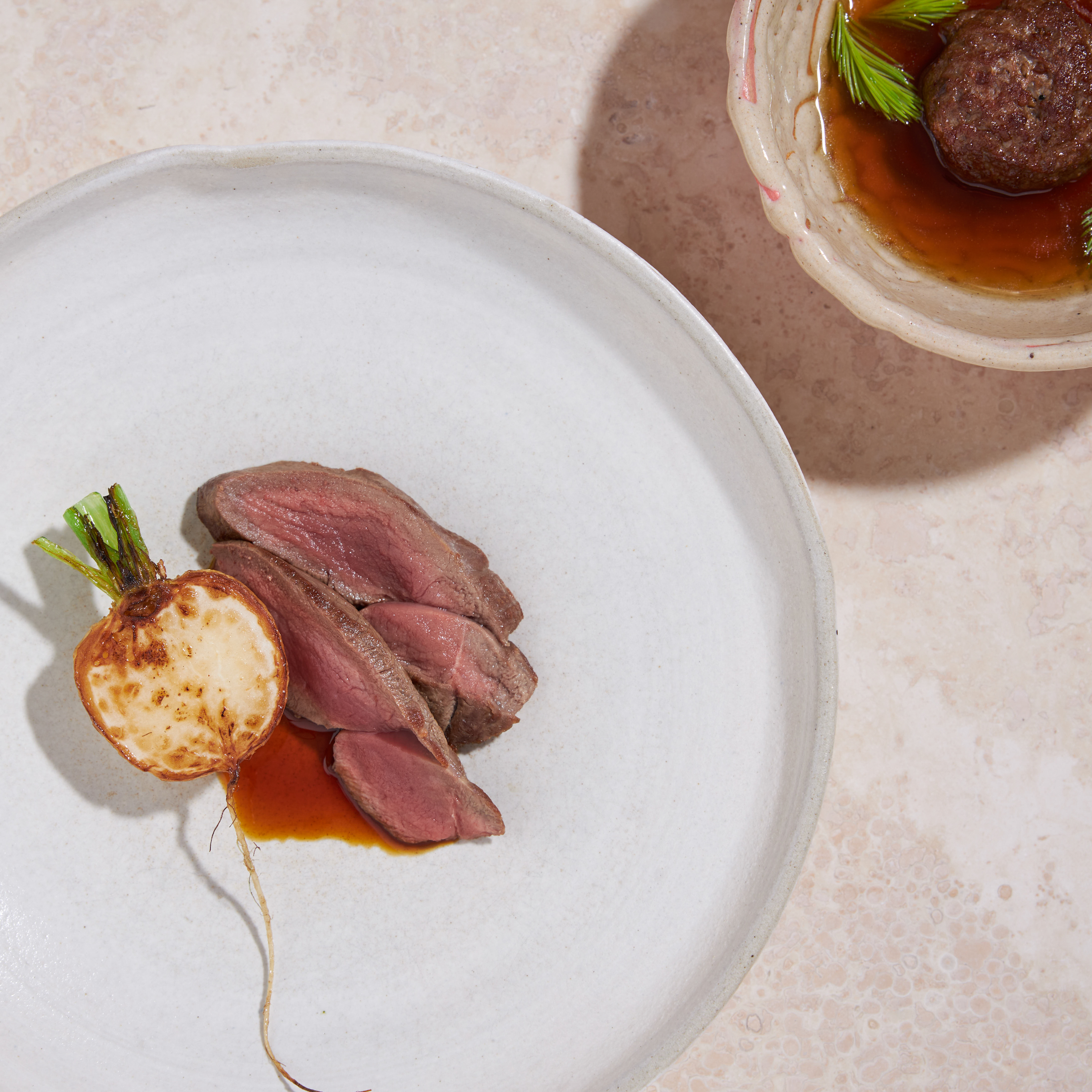 Sommelière Mara Feißt pours surprising, characterful wines into the glass - for the main course (lamb, elder and mushroom jus), a fruity Pinot Noir from Burgundy. The service is cordial. This is another reason why Kommod is so cosy.
