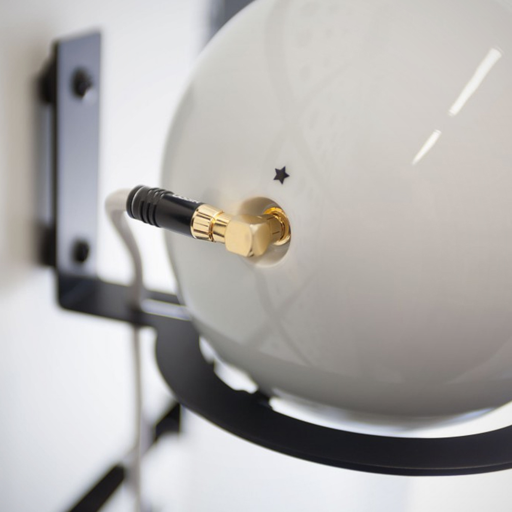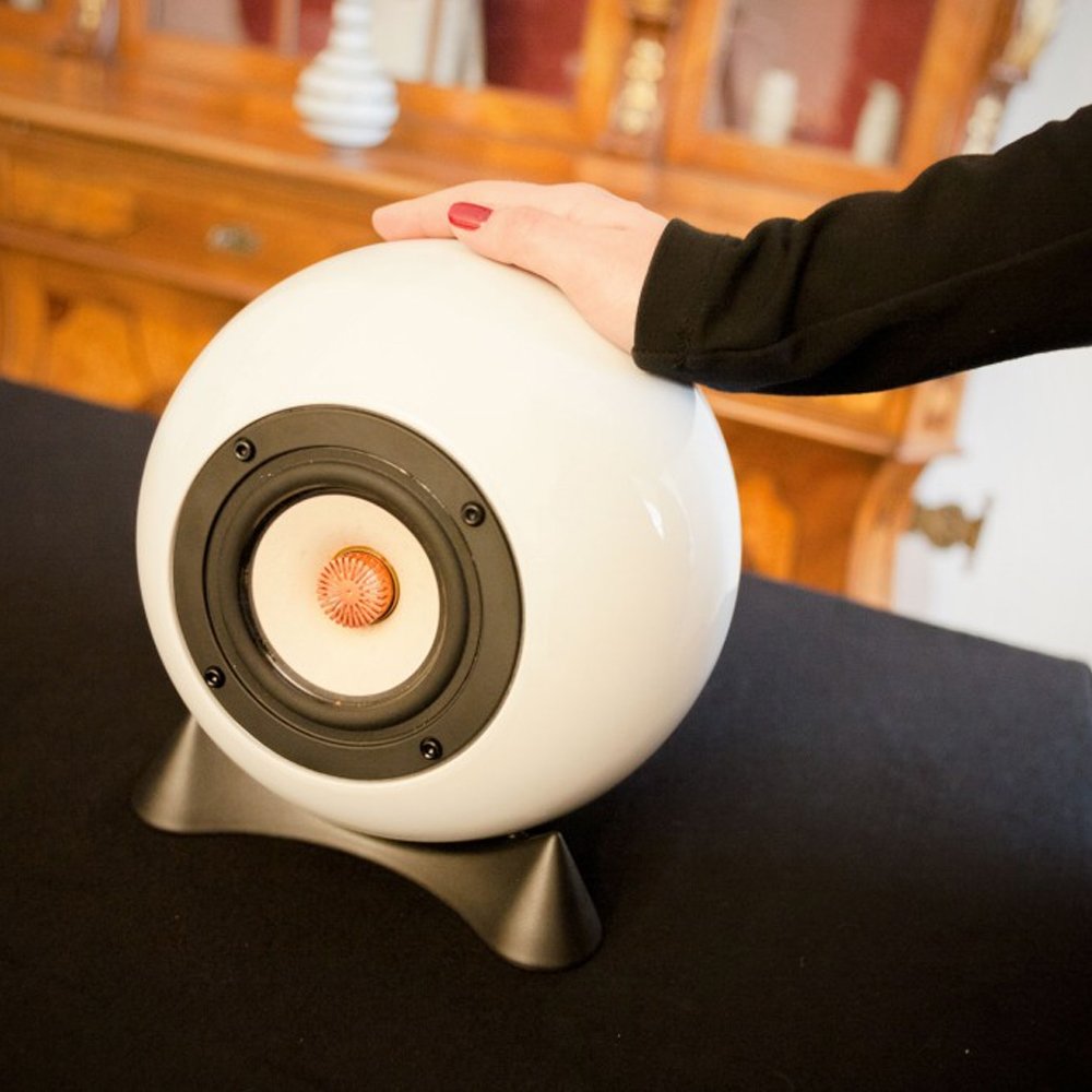 The ball speakers come with porcelain tripods or steel ring wall mounts, so they look and sound sexy anywhere, be in your office, your living room, or on your desk. Sound engineers like to use them in their studios. And even though they are quite small, they even fill very large rooms with rich and silky sound.