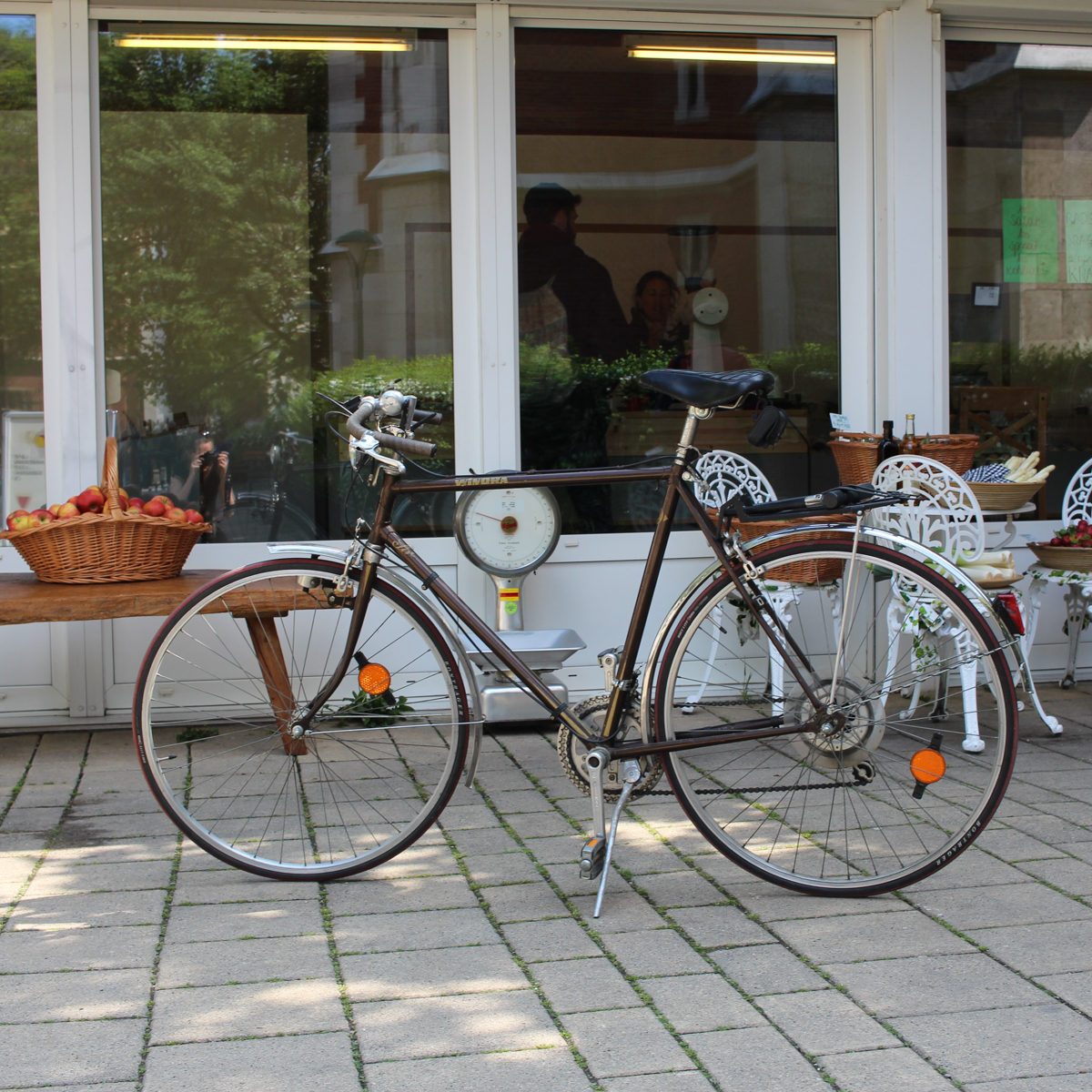 There are also fresh pastries from the bakery and - on weekends and holidays - a breakfast that in its simplicity is a pleasant change from the increasingly fancy creations: coffee, pastries, sweet (jam from the region) or vegan spread and "an apple from the region".