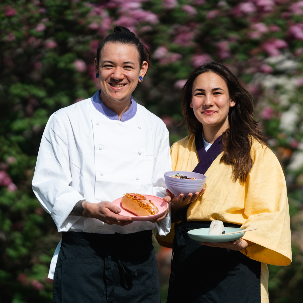 Many guests, Lisa says, don't even notice the difference. And are then surprised when they learn that the thunigiri onigiri (stuffed rice balls) are not filled with "real" tuna and egg mayo. Depending on the season, seasonal specials are added to the menu: In autumn, there is warming miso soup with seaweed and mushrooms and autumnal drinks like hojicha latte, made with roasted green tea.