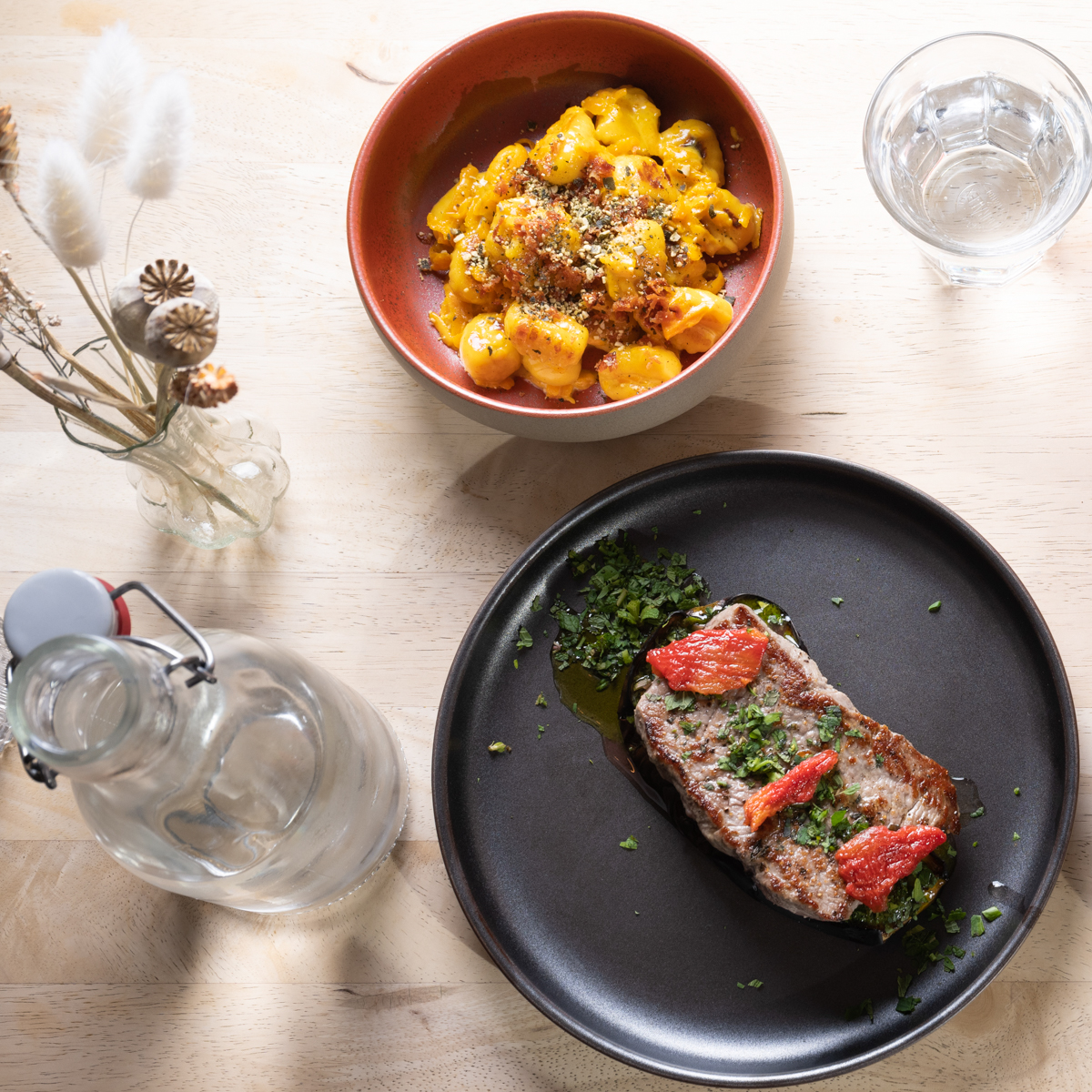 For secondi in the evening, the juicy beef entrecôte with baked aubergine and salsa verde (28.5 francs) is just as recommendable as the tender osso buco with hearty braised vegetables on white polenta and gremolata (26.5 francs).