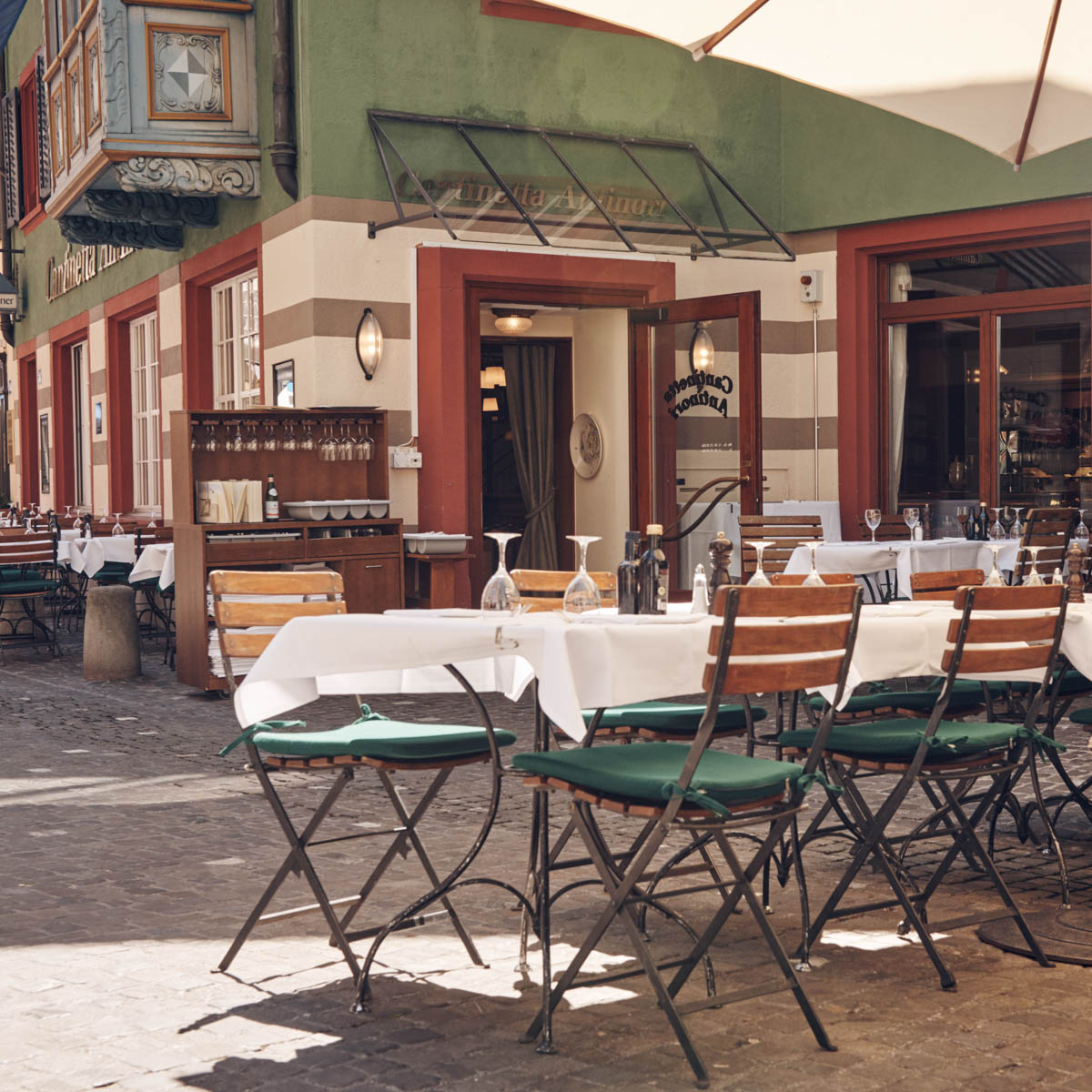 Cantinetta Antinori in the chic part of Bahnhofsstrasse knows elegance: the candlelight is reflected in the polished wine glass at white-covered tables, and classic Tuscan cuisine is served with typical Italian hospitality.