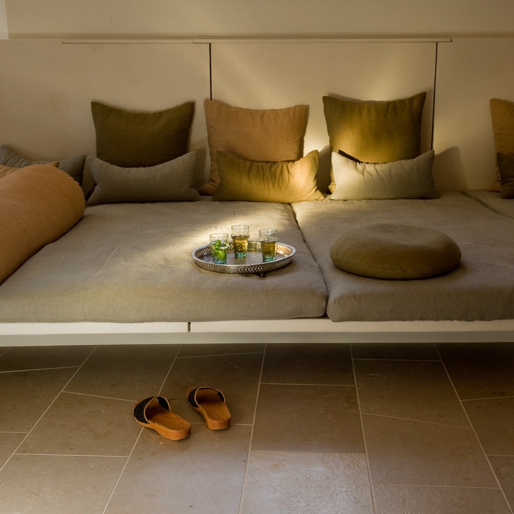 I started my visit with a tour of the subtle, but beautifully designed hammam. After a brief introduction to the ritual I cleansed using the house Savon Noir made with olive oil, crushed olive stones and cedar ash. I washed thoroughly and then relaxed, alternating between the steam room and the large heated stone in the hot room. Here I practically forgot time and space.