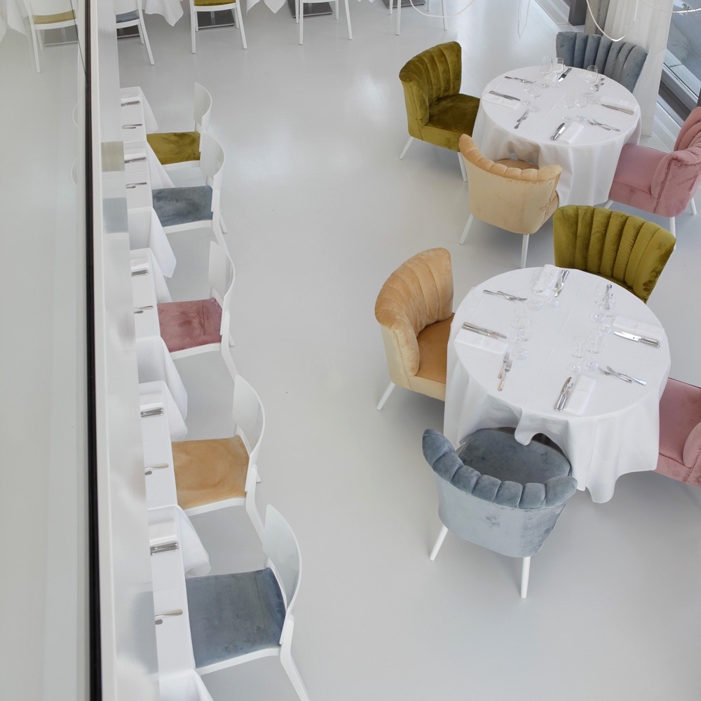 Louis' is found in a light-flooded room with a view of the lake and the snowfall reminds me of the Snow Queen's glass palace. Most of the interior is decked out in white: the candelabra, the floor, the leather benches with pastel detailing - the view is breathtaking. I feel a bit out of place without my pumps. But manager Lars Krauss doesn't mind at all. A Valais native he, together with his business partner Verena Thalmann, has fulfilled a long-cherished dream of having a restaurant. Now he can cater for guests daily, regardless of whether they’re in a cocktail dress or in jeans and boots.