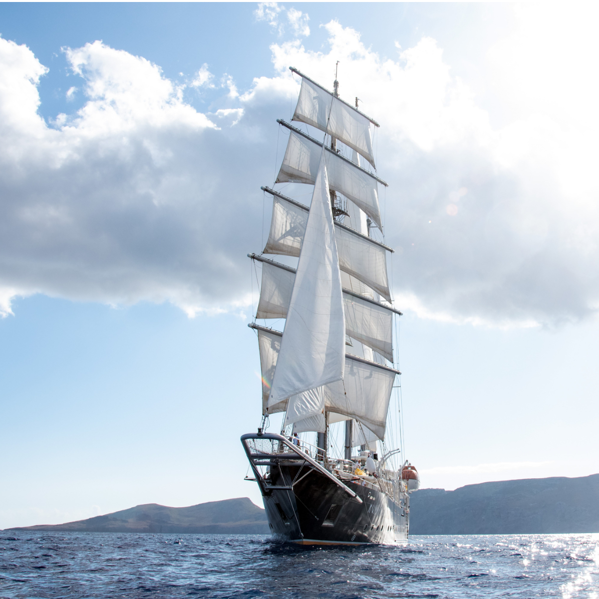 Das prächtige Schiff, gekrönt zum schönsten Segelschiff des 21. Jahrhunderts, ist ein ungemein moderner und zugleich einer der exklusivsten Luxus-Dreimaster der Welt, der die spektakulärsten Golfplätze am Mittelmeer und Schwarzen Meer ansteuert.