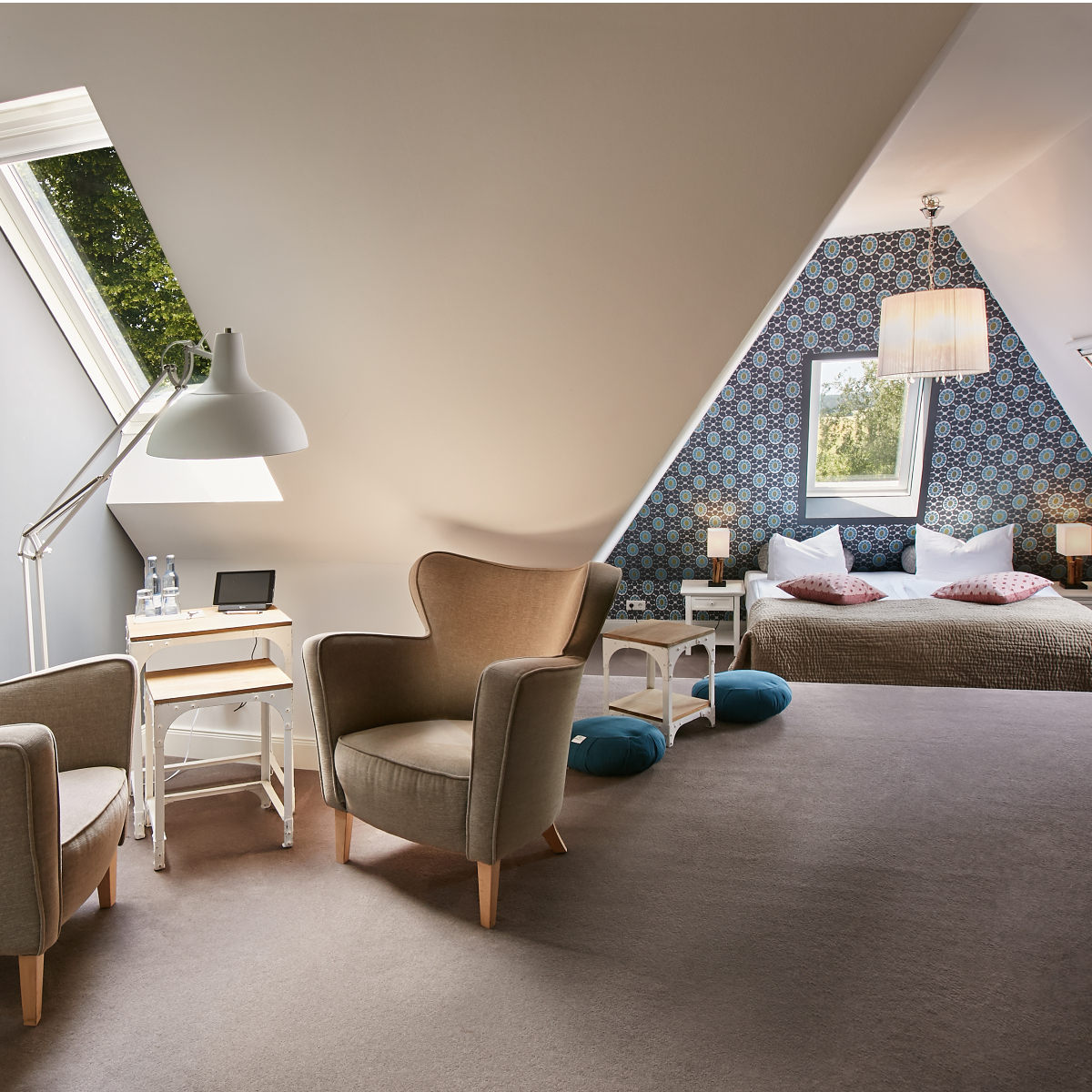Klein und persönlich, mit Kamin und bequemen Sofas im Foyer und gerade einmal 19 sehr individuell ausgestalteten, gemütlichen Zimmer und einer Suite, teils, und gerade im Sommer die erste Wahl, mit Balkon. Von unseren Fenstern aus sehen wir den idyllischen Flusslauf der Warnow.