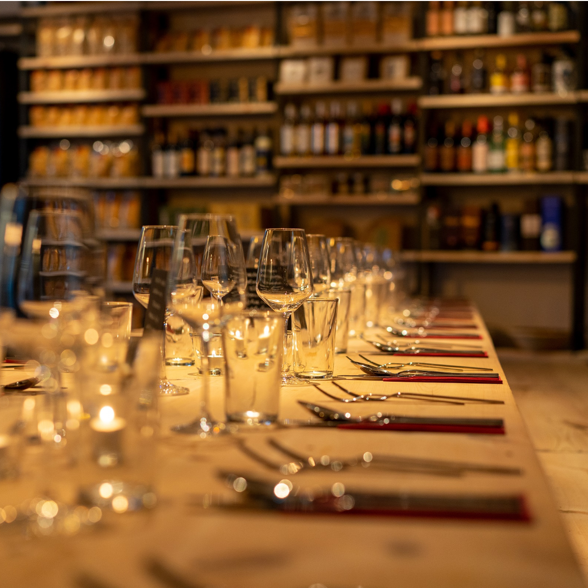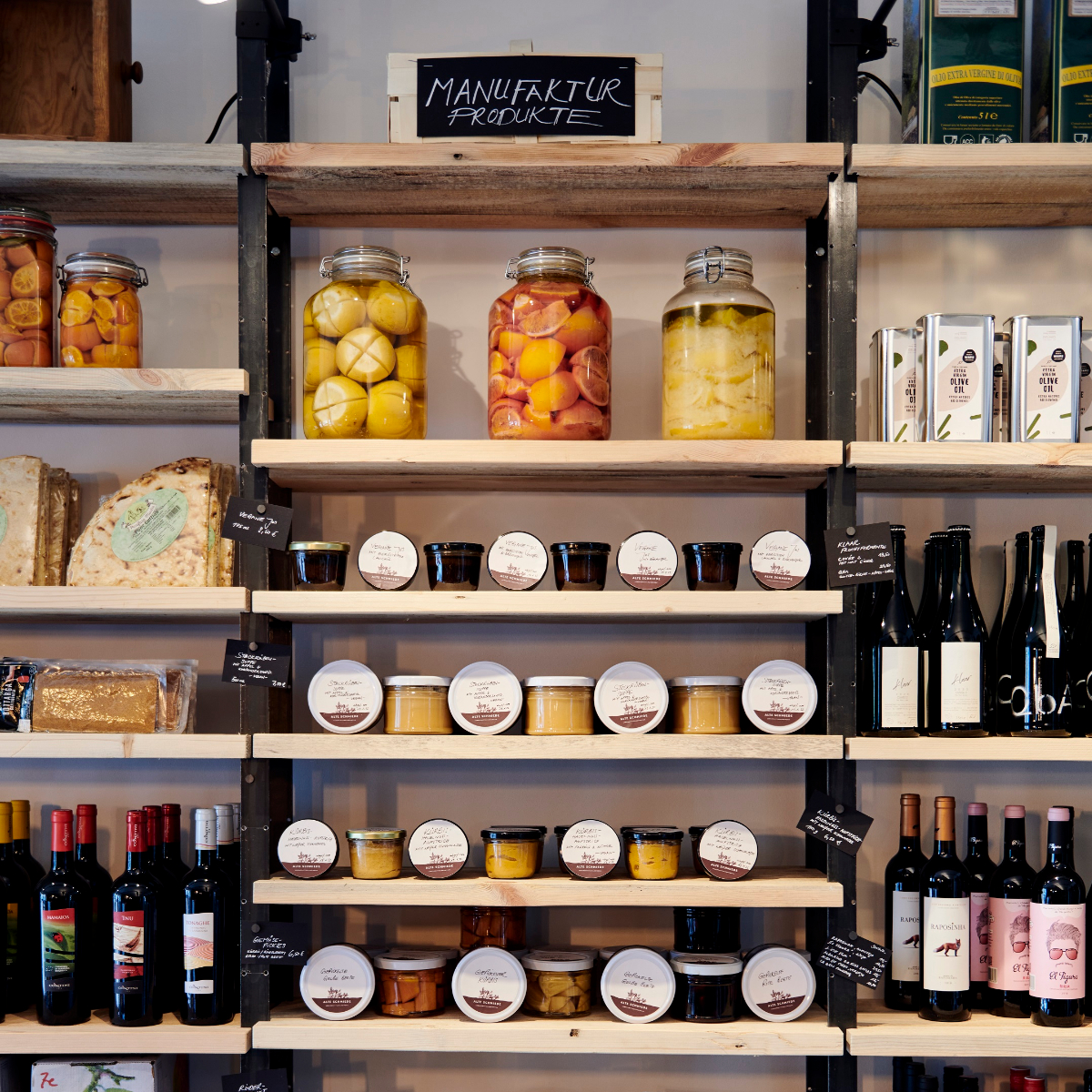 In dem schön gestalteten zweistöckigem Gebäude, kann man hochwertige Lebensmittel erstehen, manche davon aus hauseigener Manufaktur, Kochkurse belegen, sich zum Dinner einmieten, Weine verkosten, die Produkte des Hauses bei einem guten Kaffee genießen oder sich mit anderen kulinarischen Goldsucher*innen an einer langen Tafel zum Schmiededinner oder dem Nimm-5-Pop-Up niederlassen. Wen das Nimm-5-Pop-Up in der Alten Schmiede überzeugt, kann sich von Helge und Jules Massey übrigens auch an anderen spannenden Orten bekochen lassen. Einige Male im Jahr bieten sie ihr Nimm-5-Menü in wechselnden Locations in Hamburg an.