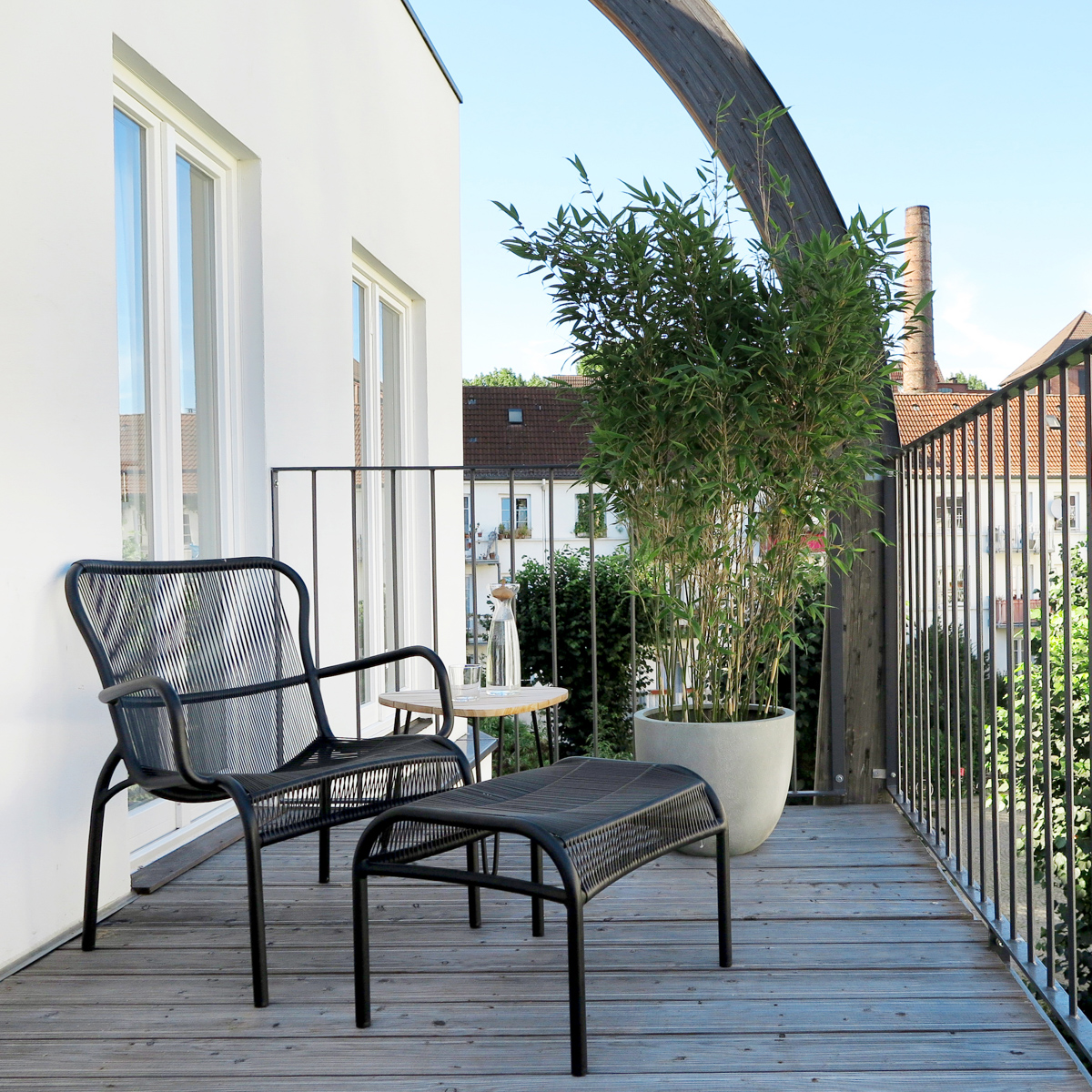 Der frische Blumenstrauß, der uns auf der Küchenzeile begrüßt, beweist Liebe zum Detail und die Herzlichkeit der Gastgeber. Und die ist im August the Boardinghouse von der ersten Minute an spürbar. Besonders schön ist auch, dass zu allen Apartments entweder eine kleine bestuhlte Terrasse oder ein Balkon gehören. Im Garten laden dazu noch bequeme Lounge-Möbel zu einer kleinen Verschnaufpause im Grünen ein.