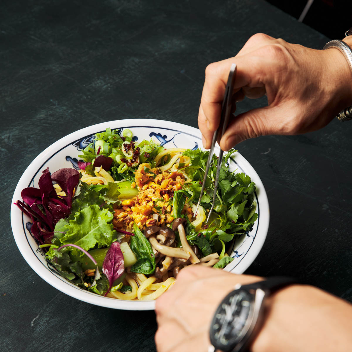 Das über viele Stunden geschmorte Ginger Beef Gulasch mit Spinat, eingelegten Zwiebeln und Koriander schmeckt auch ohne wunderbar, ebenso wie das Szechuan Style Rinder Ragu mit Frühlingszwiebeln, Gurke und Erdnüssen. Zudem gibt es bei BATU Noodle Society eine erfreulich große vegane Auswahl: Cashew Tantanmen Nudeln mit Blumenkohl-Hack, Lilienblüten-Pilzfond und Shimeji Pilzen ist nur eine von ihnen.