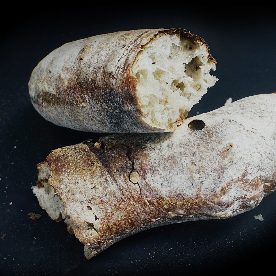 Eine dicke krachende Kruste mit Röstaromen aus dem Holzofen und ein duftendes, luftiges und zartes Inneres machen das Sauerteigbrot des gebürtigen Schweizers aus. Inspiriert wurde der ehemalige Werbefachmann von Schweizer Backwaren wie Bürli und Sauerteigbrötchen in seiner alpenländischen Heimat.