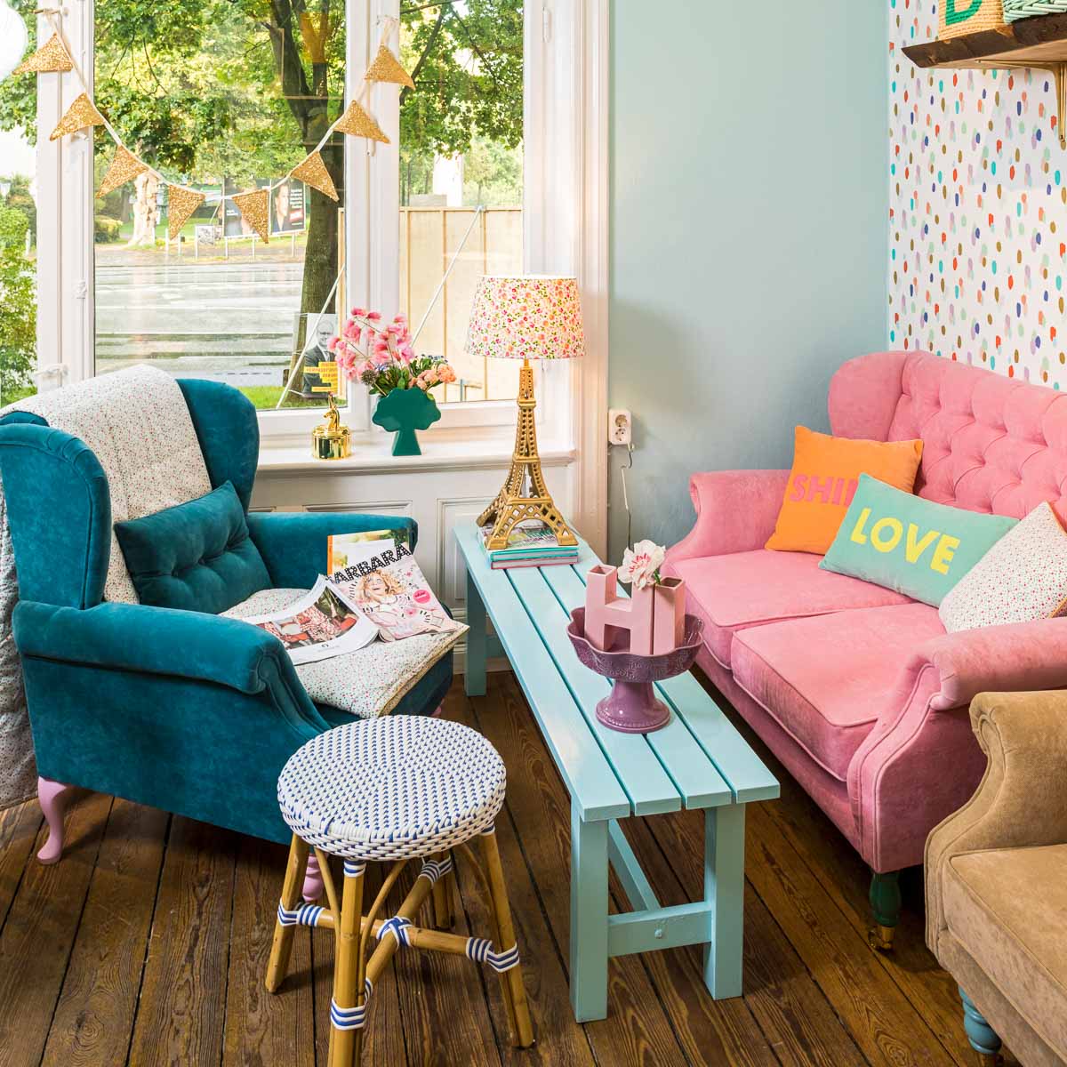 Die Riceteria ist ein Konzept aus Shop und Café und gleicht in Hamburg einer riesigen Altbauwohnung über zwei Ebenen, mit schönen Holzböden, hohen Decken, verspielten Tapeten und einer großen Portion Gemütlichkeit. Überall laden farbenfrohe Sofas und Sessel zum Chillen, Lesen und Kaffeetrinken ein.