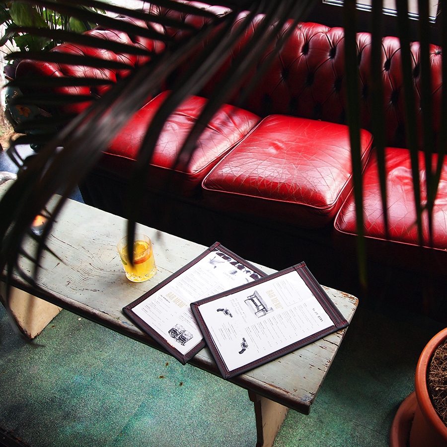 Das Einrichtungsmotto ist „upcycling“. Hier findet man Außergewöhnliches, Antikes, rustikale Holzbänke, knarzende Bohlen und an den dunklen Wänden Kunst und friesische Kacheln – was für ein Mix! Die Sitznischen sind durch Metallgitter getrennt, eine große Bar in der Mitte des großen Raumes, DER Treffpunkt für Kontaktsuchende und Liebhaber richtig guter Drinks und spannender Cocktails.