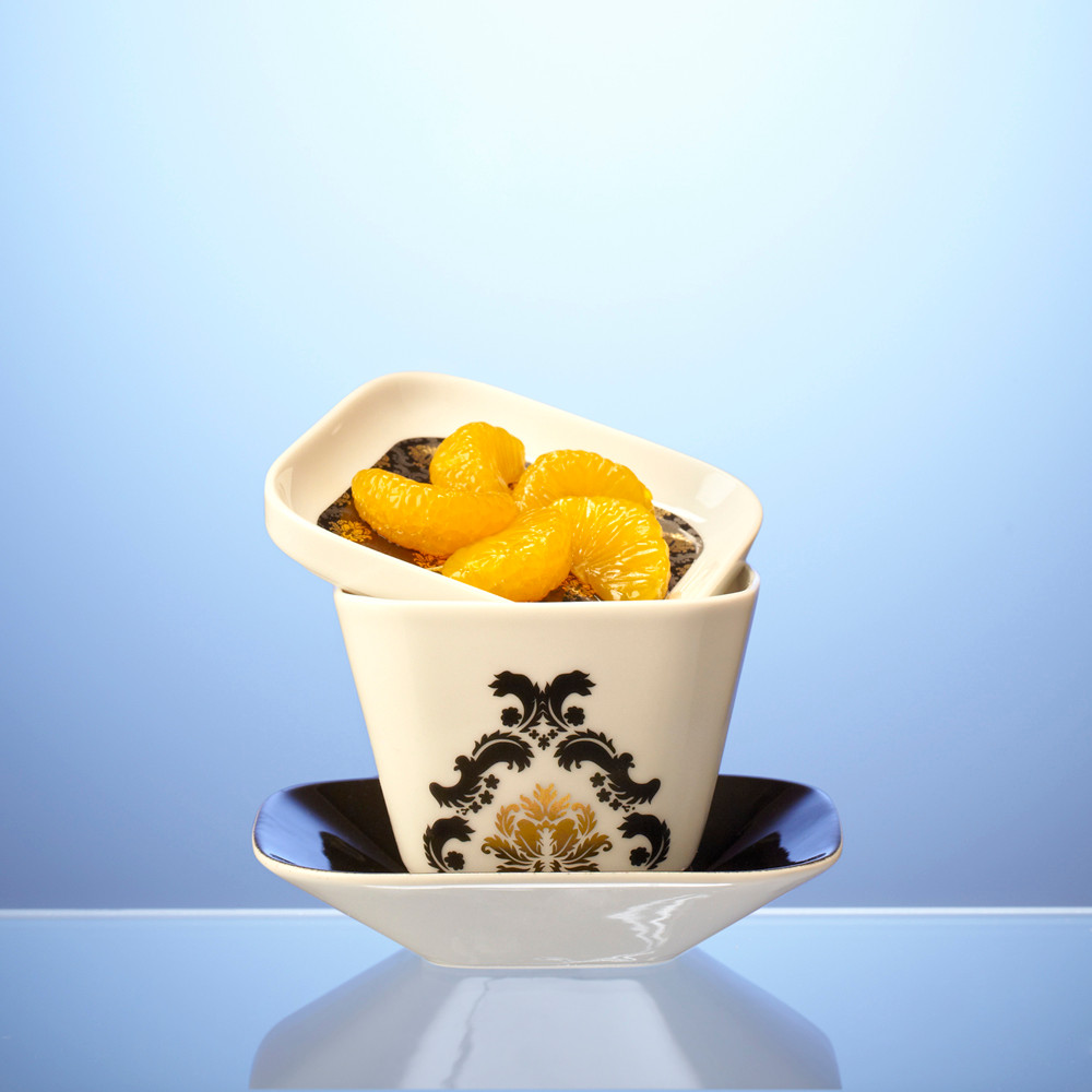 Doch zuvor bereitet uns Ina, wie sich unsere Servicekraft charmant vorstellt, ein Tatar nach unseren Vorlieben am Tisch zu. Als zweite Vorspeise wählen wir den köstlichen Thunfisch „Vitello Style“ mit marinierten Scheiben vom Kalbsrücken, Kapern, Senf-Ei-Mayonnaise. Das nette Pärchen am Nachbartisch macht mindestens so große Augen wie wir als unser Hauptgericht, das saftige Schwarzfederhuhn, extra für uns gekonnt tranchiert wird. Köstlich!