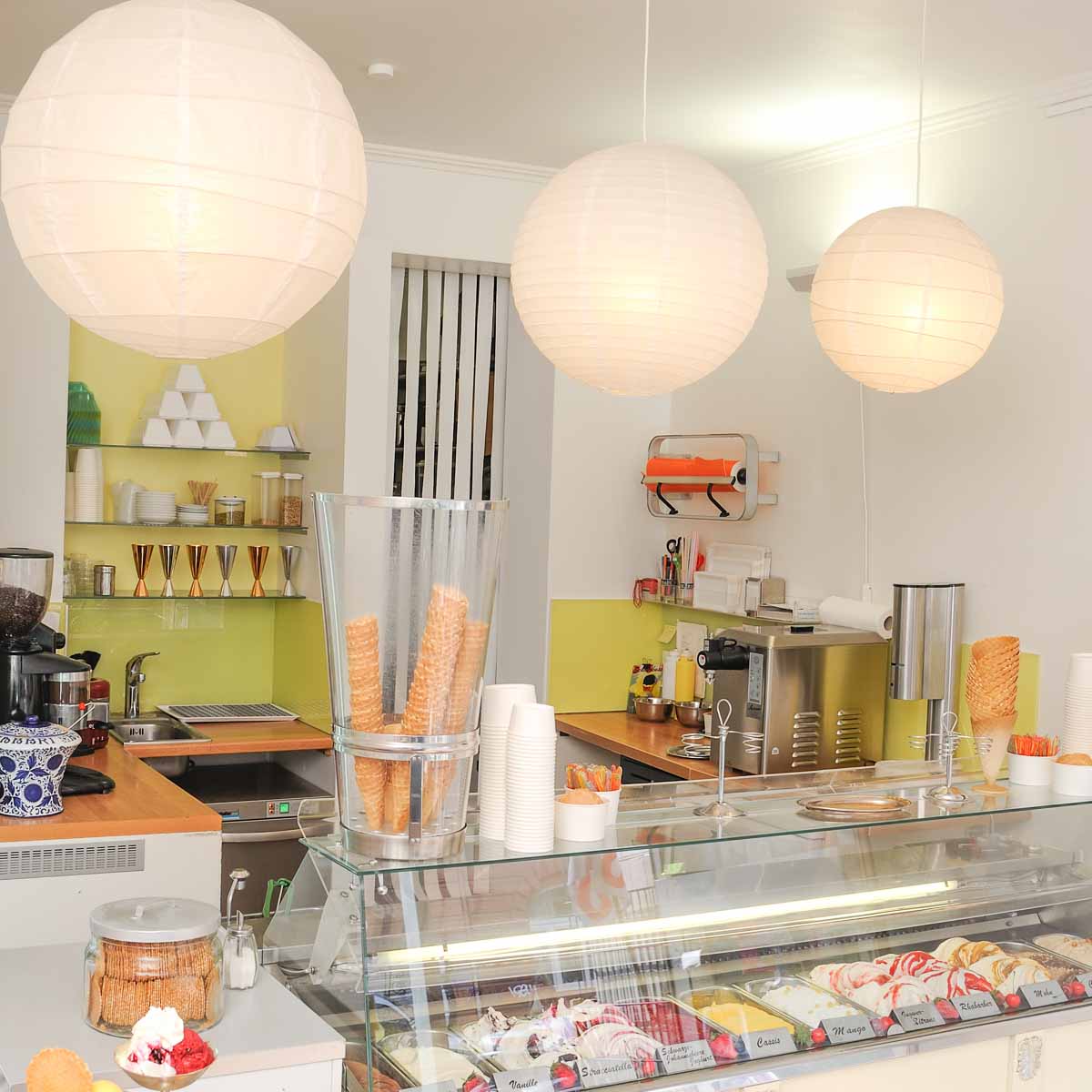 Hier ist der Name Programm. Mit der Übernahme der Eisliebe hat Inhaberin Julia Tarazi ihre Leidenschaft zu ihrem Beruf gemacht. In der kleinen Küche im hinteren Laden produziert sie täglich zwölf Sorten, die ganz frisch aus der Eismaschine vorn in der Theke landen – und meistens ziemlich schnell aufgegessen sind. Die Sorten richten sich nach der Saison und versuchen gar nicht, besonders ausgefallen zu sein, sondern setzen vor allem auf beste Zutaten und handwerkliche Zubereitung.