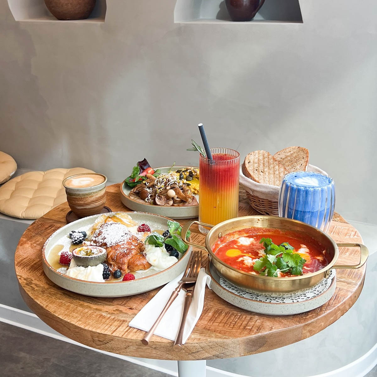Könnten Wörter doch duften. Dann könnten wir die süßlich-herbe Tomaten-Kurkuma-Sauce des „Golden Shakshuka“, die gegensätzlichen Aromen von Cheddar und Kimchi auf dem „Double Kimchi Cheese“-Croissant oder die Zimtnote der Yamswurzel bei der lilafarbenen „Ube“-Waffel riechen. Gut, so weit sind wir noch nicht. Dafür aber sind Frühstück und Brunch im eleven 11:11 eleven so hübsch und farbenfroh angerichtet, dass sie, kaum serviert, schon auf Instagram begeistern.