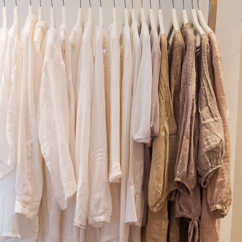 Während ich mich gerade in ein Paar malvenfarbene Woll-Ballerinas von Pampuschen verliebe, fragt eine Kundin, wo man den wunderschönen Vorhangstoff der Umkleidekabine herbekäme. „Das kommt öfter vor.“ sagt mir Inhaber Christoph Bestmann. „Regelmäßig wollen mir meine Kunden Möbel- und Dekorationstücke oder die Bilder an der Wand abkaufen, aber die sind leider unverkäuflich."