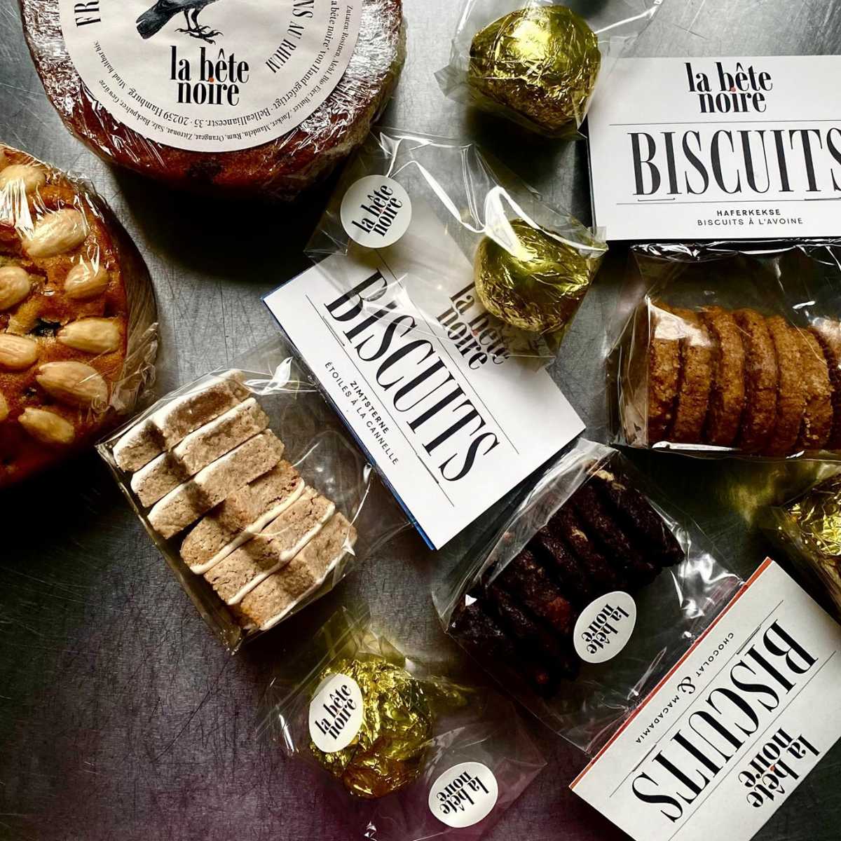 Neben dem Kaffeeangebot bietet La Bête Noire ein kleines, feines Sortiment an frisch zubereiteten Speisen. Croissants, Brioche und Kuchen sind französisch inspiriert, das hausgemachte Granola und wechselnde Snacks wie Croques oder Tartes runden das Frühstücks- und Mittagsangebot ab. Die Atmosphäre ist dabei entspannt, das Publikum gemischt und zum Großteil aus der Nachbarschaft.